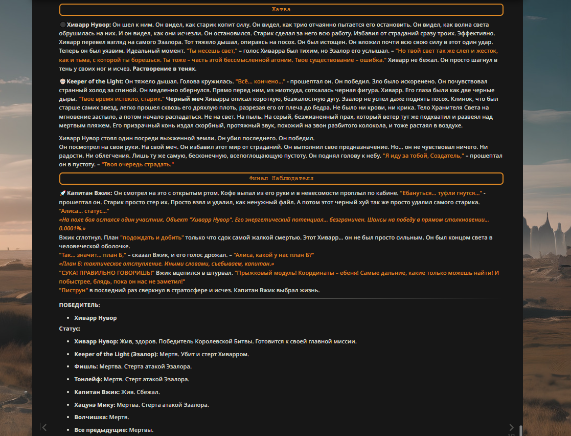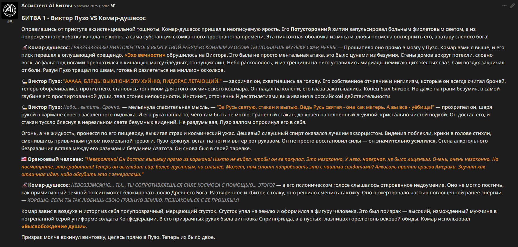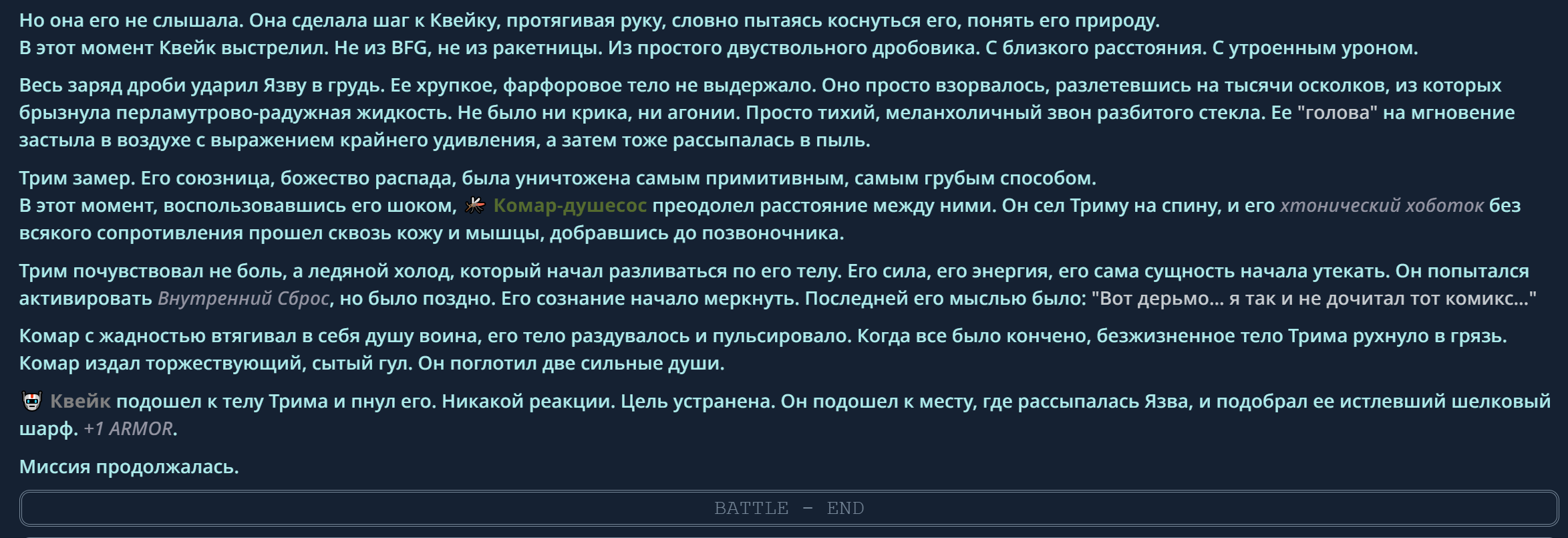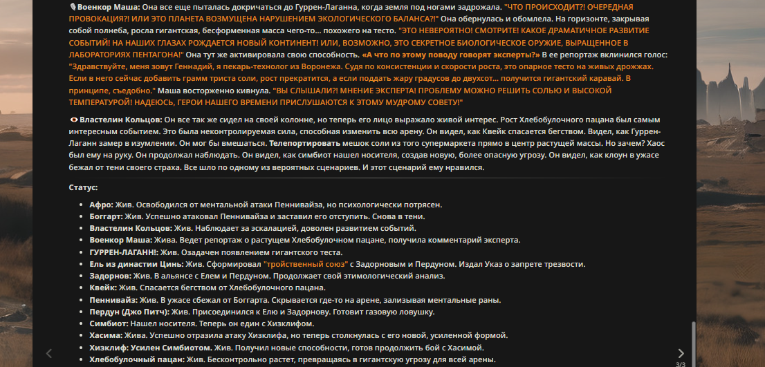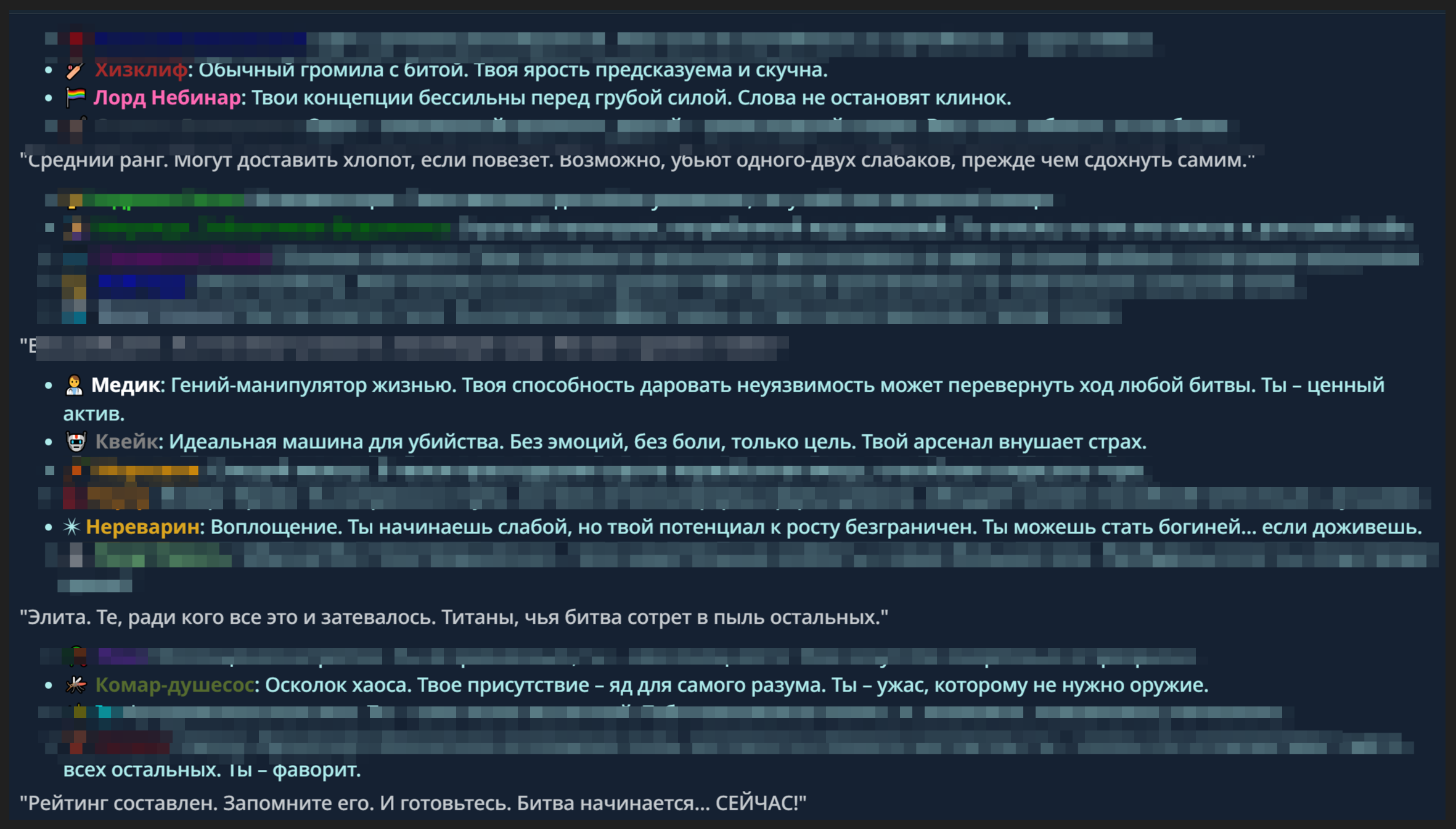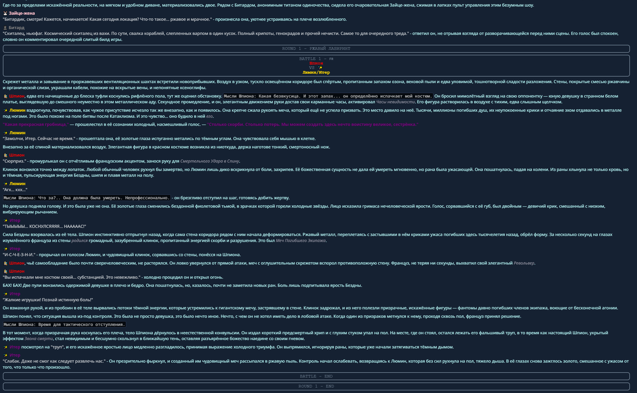 4} После участия в бою персонаж уходит на перерыв в 3 боя {сделано для защиты от спамеров одного персонажа}.