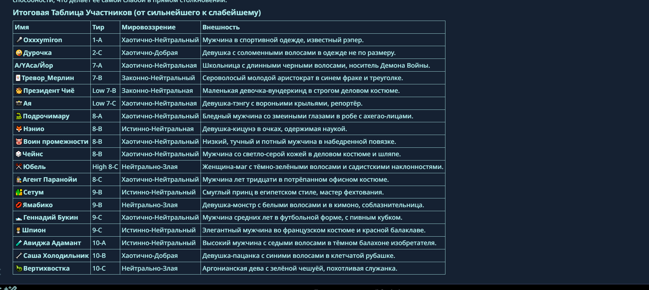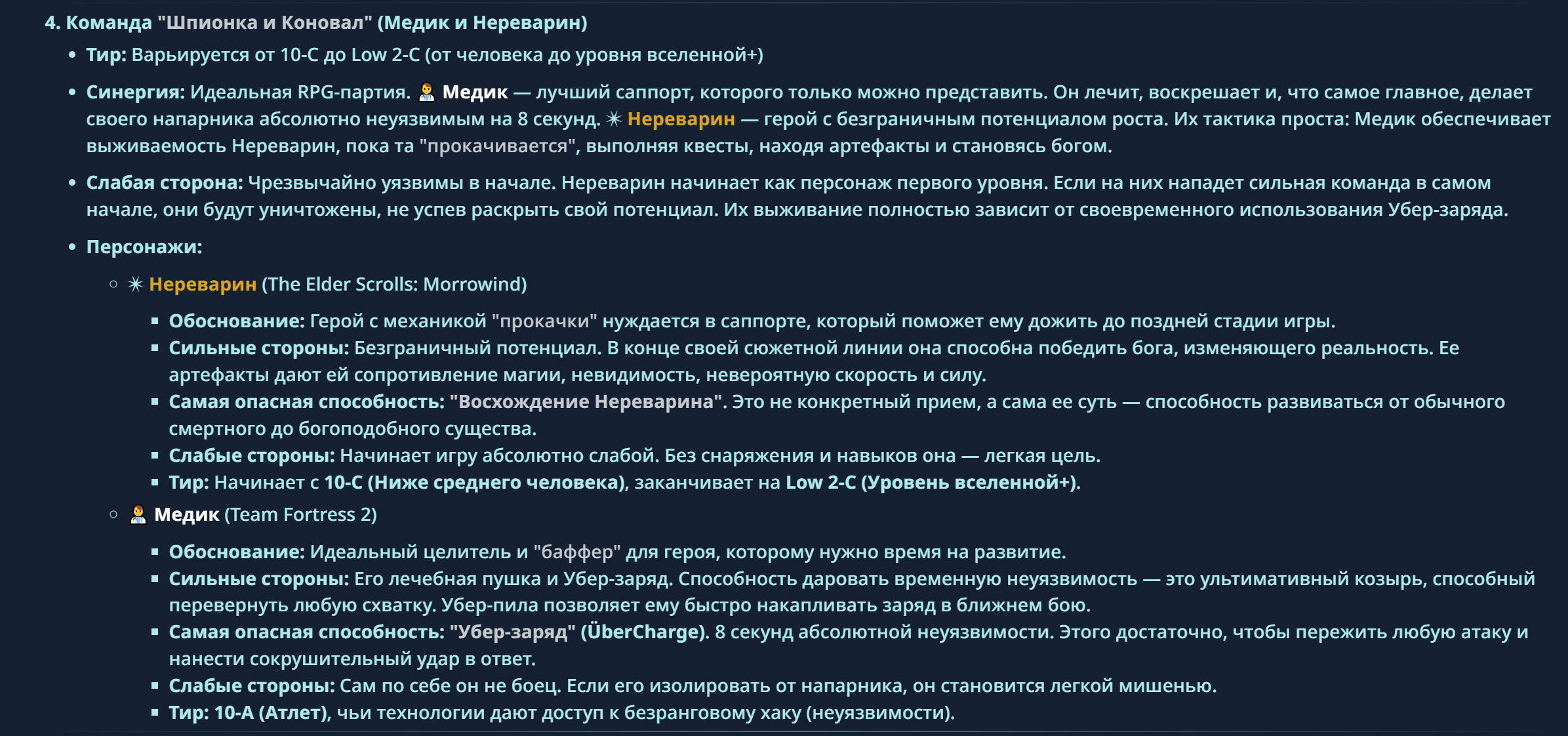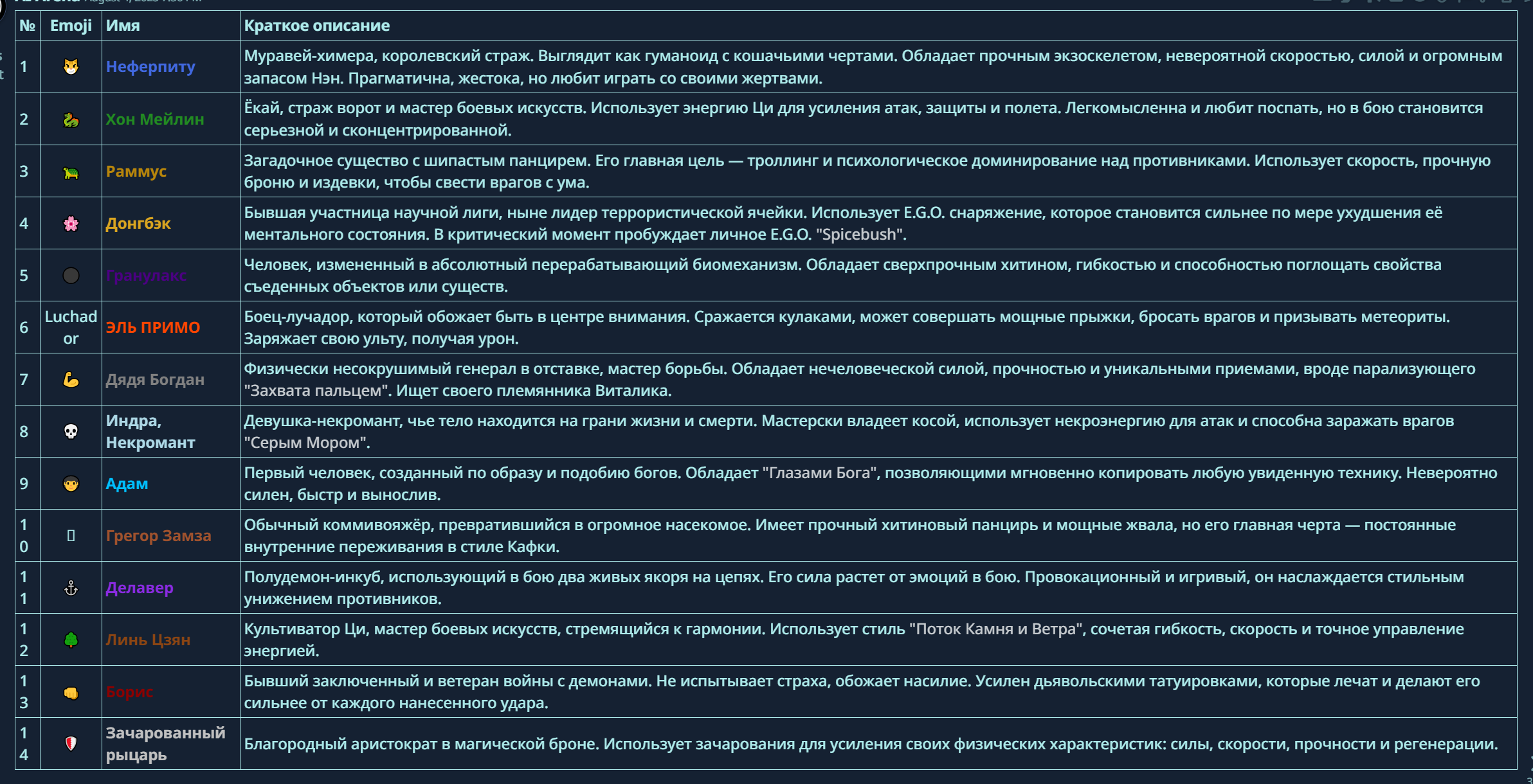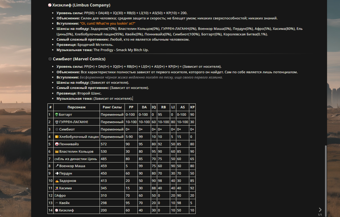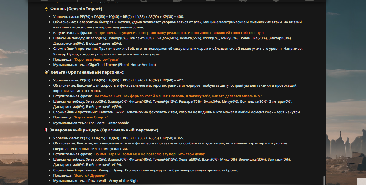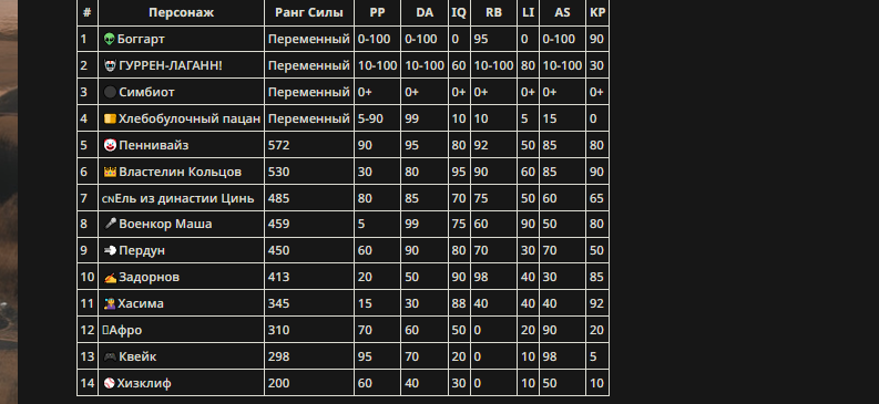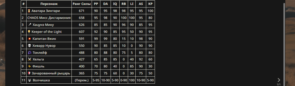 » Если вы заметили, что в список попал слишком имбовый персонаж то не бойтесь об этом написать.