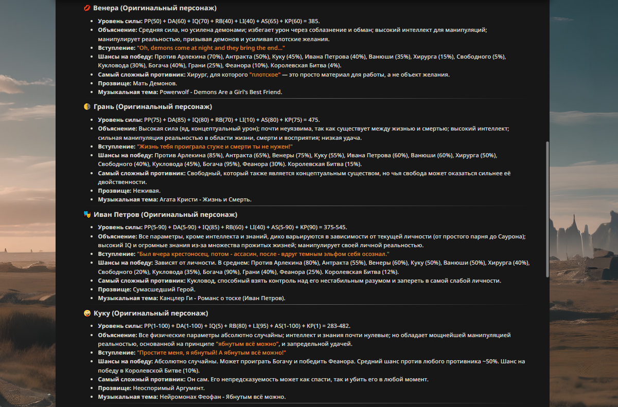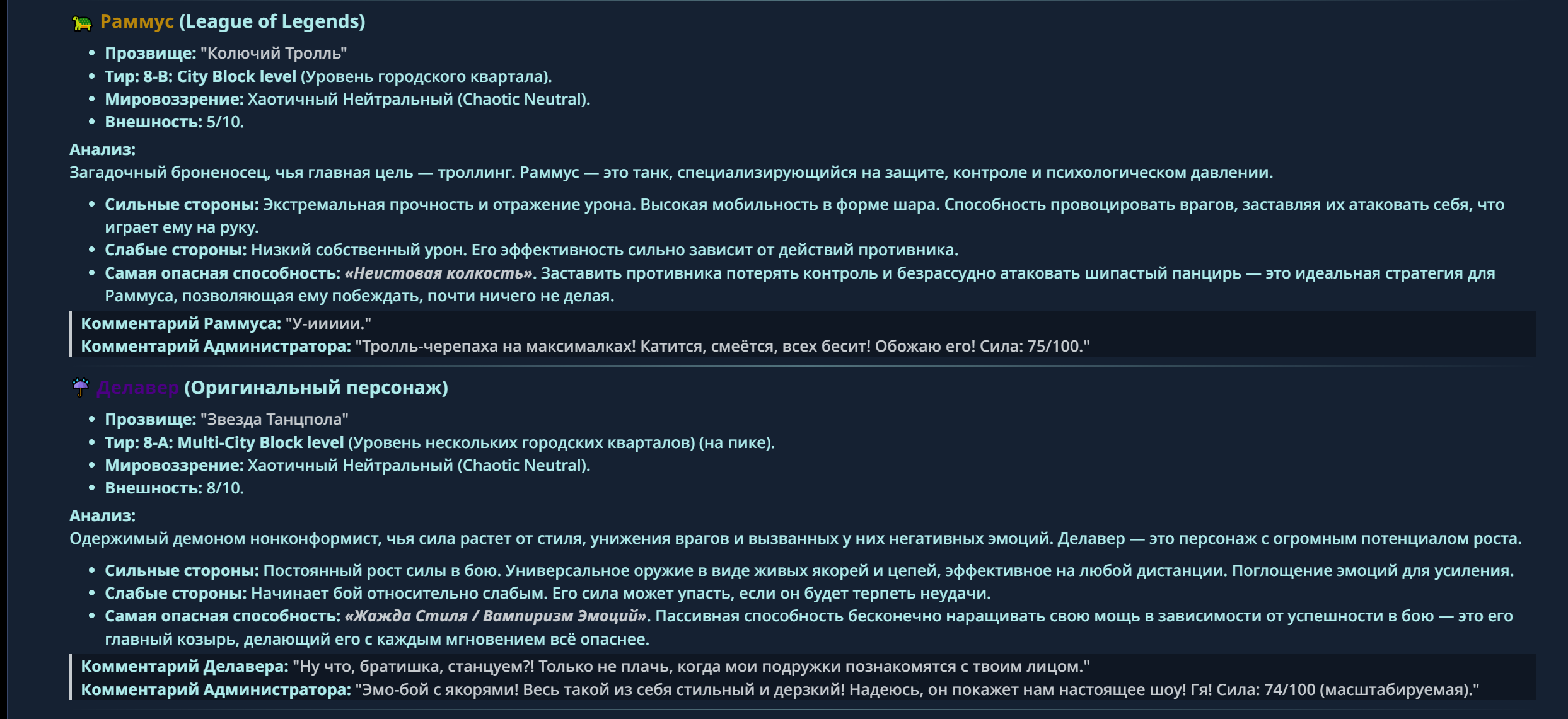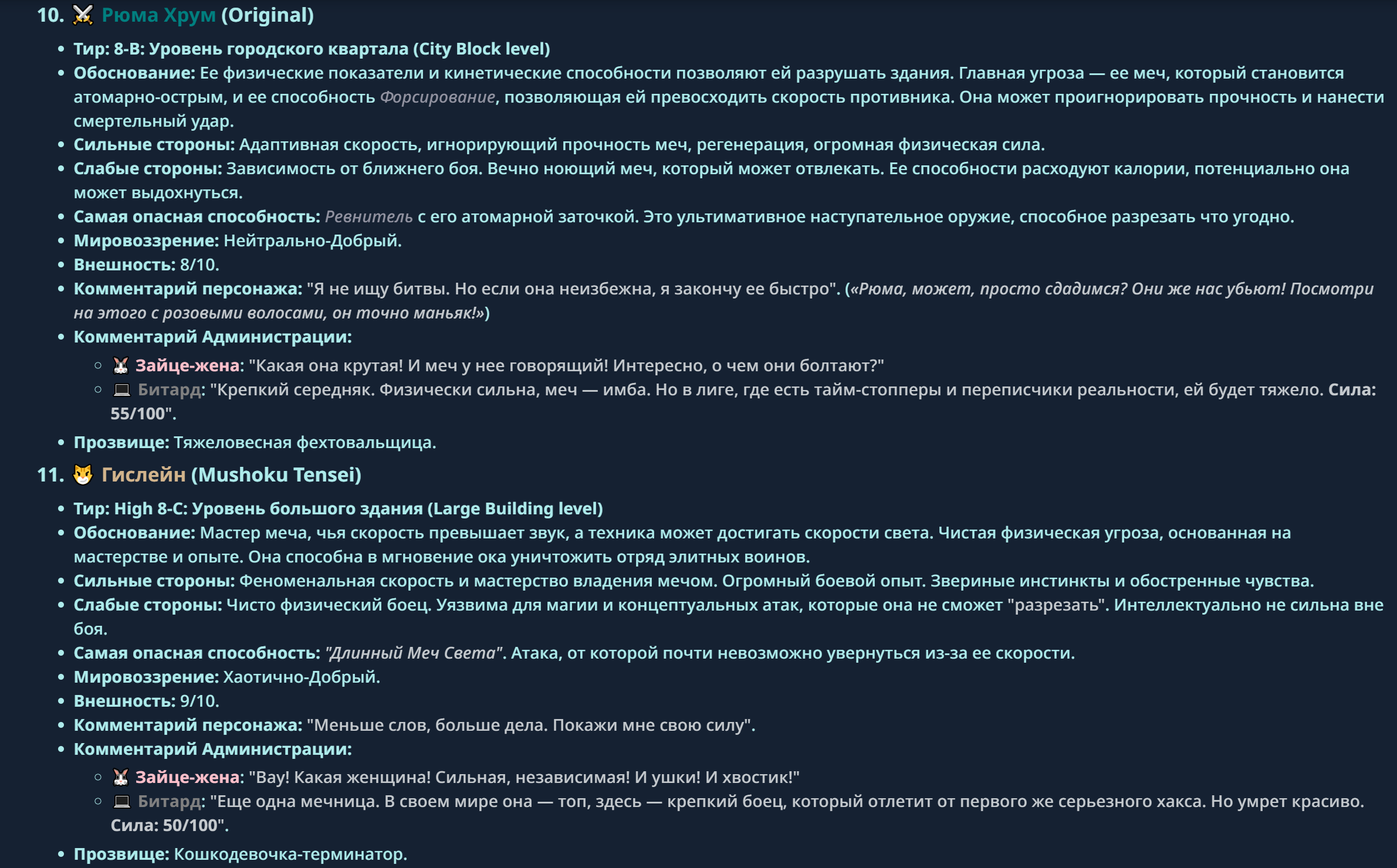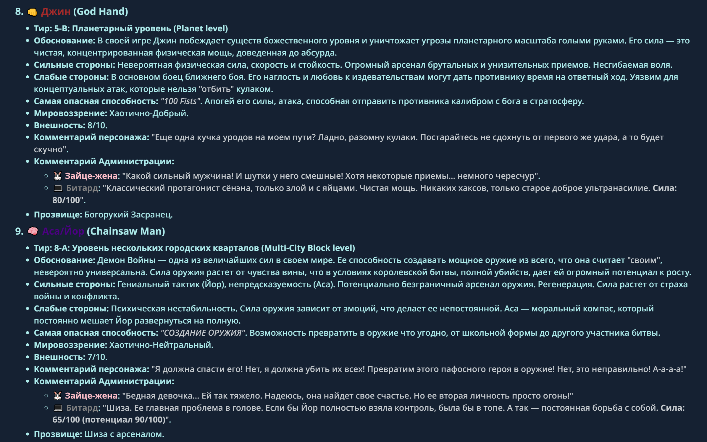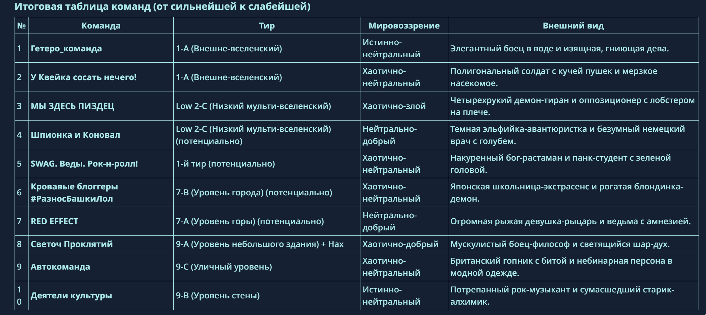 » Если вы заметили, что в список попал слишком имбовый персонаж то не бойтесь об этом написать.