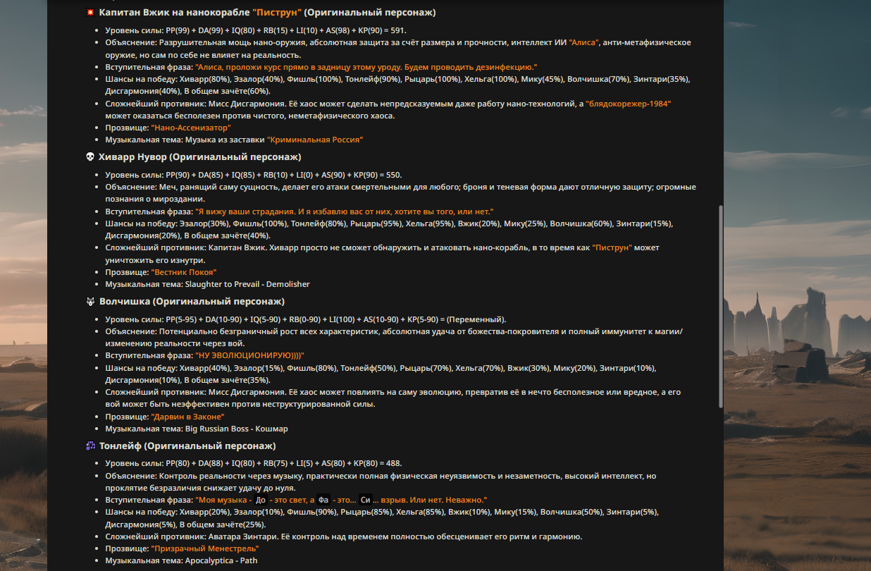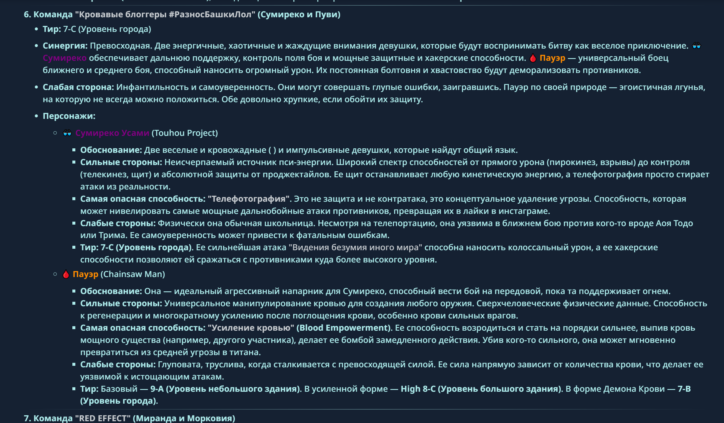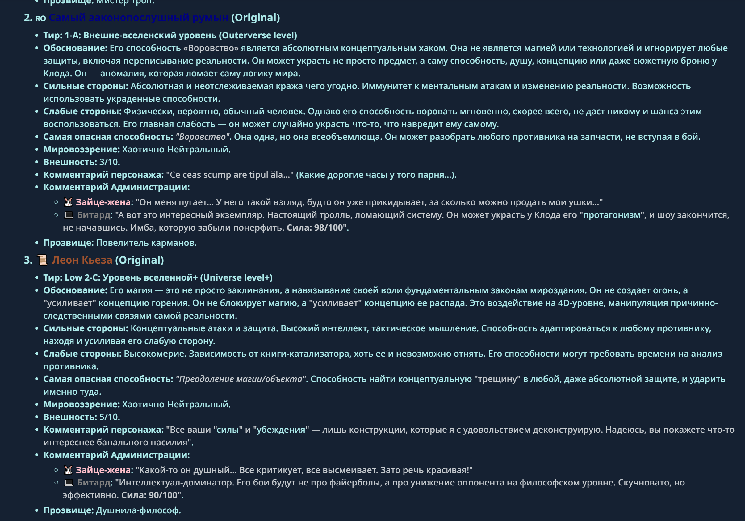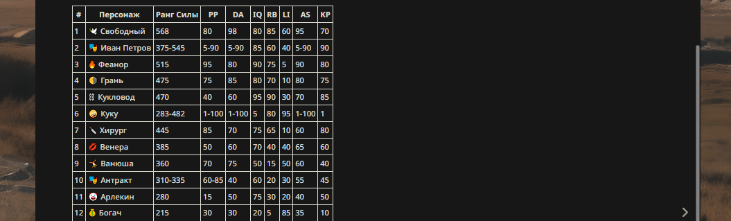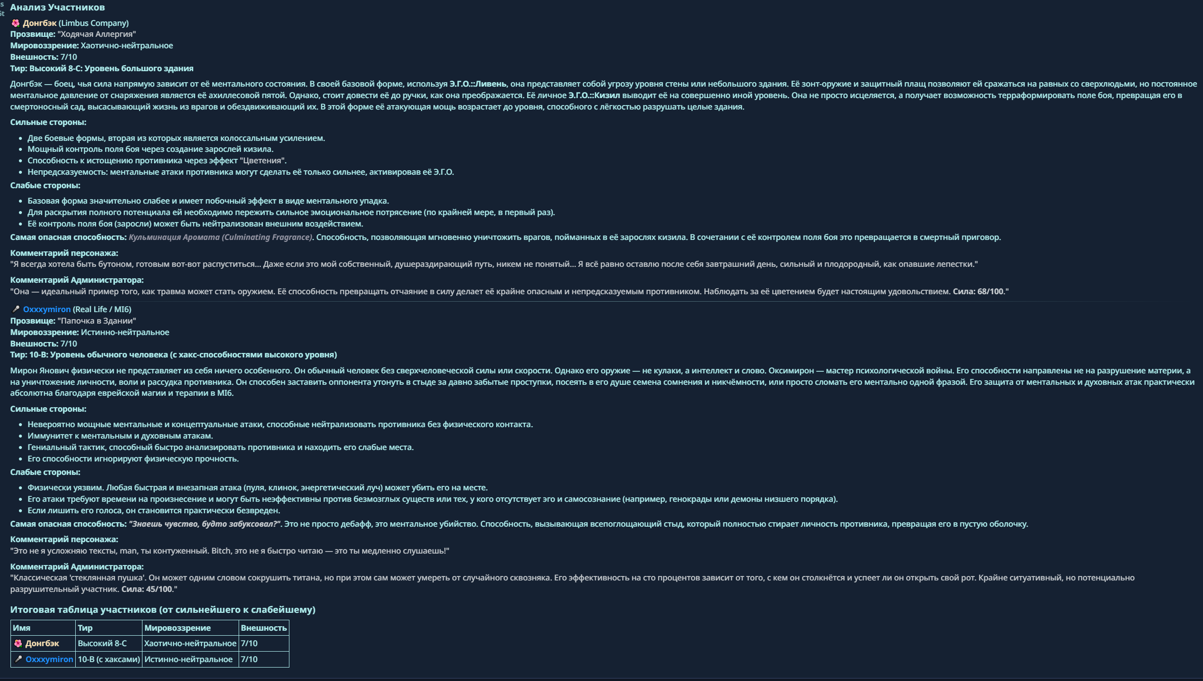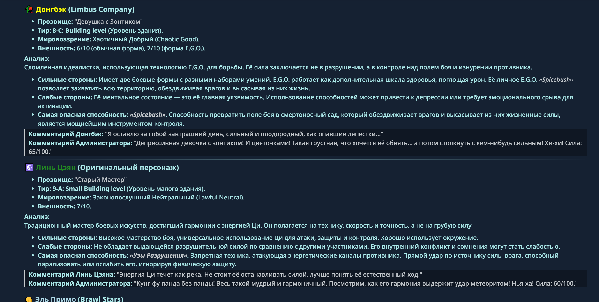 » Если вы заметили, что в список попал слишком имбовый персонаж то не бойтесь об этом написать.