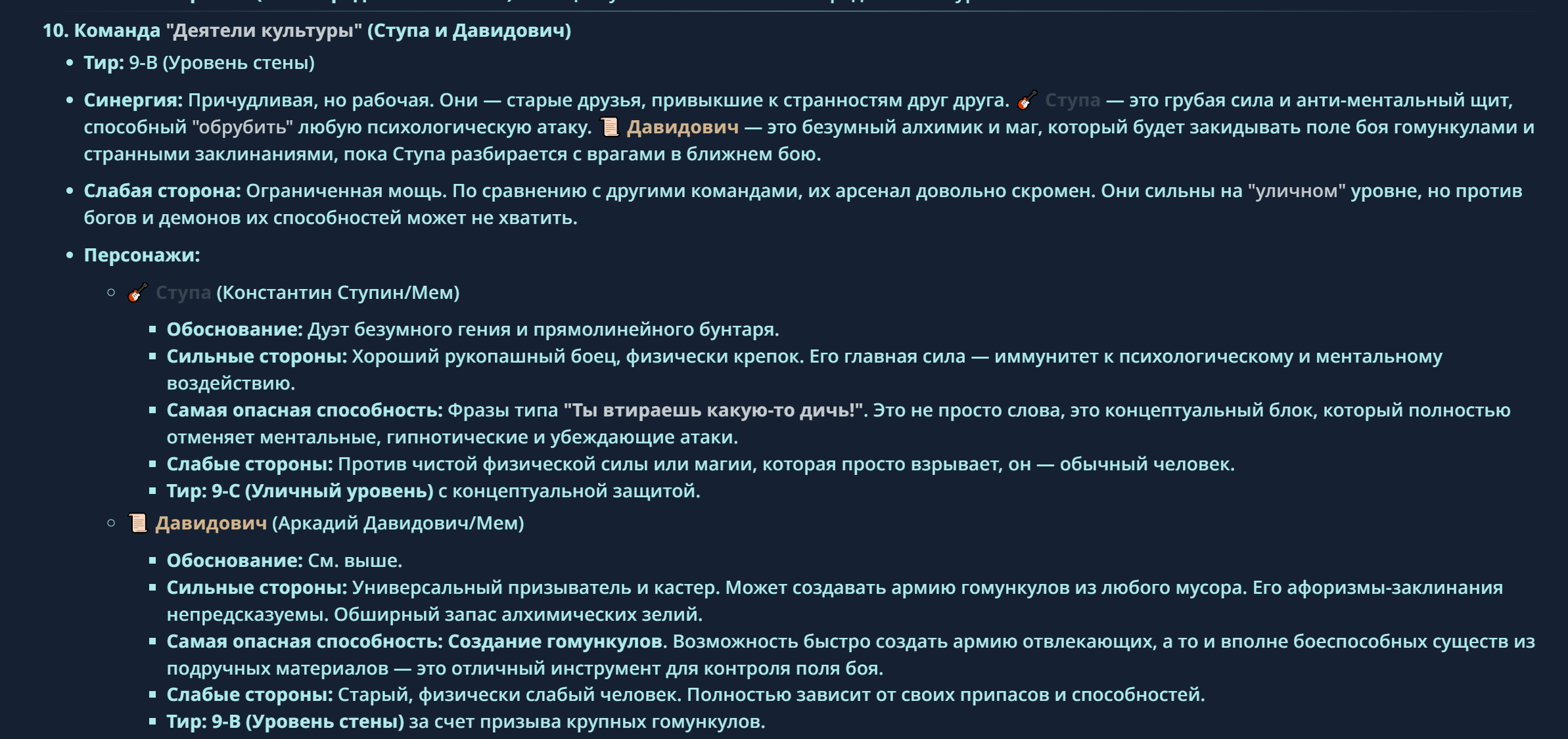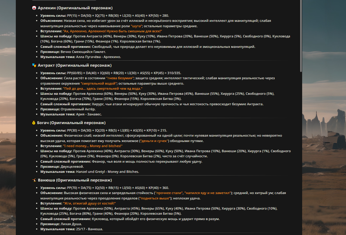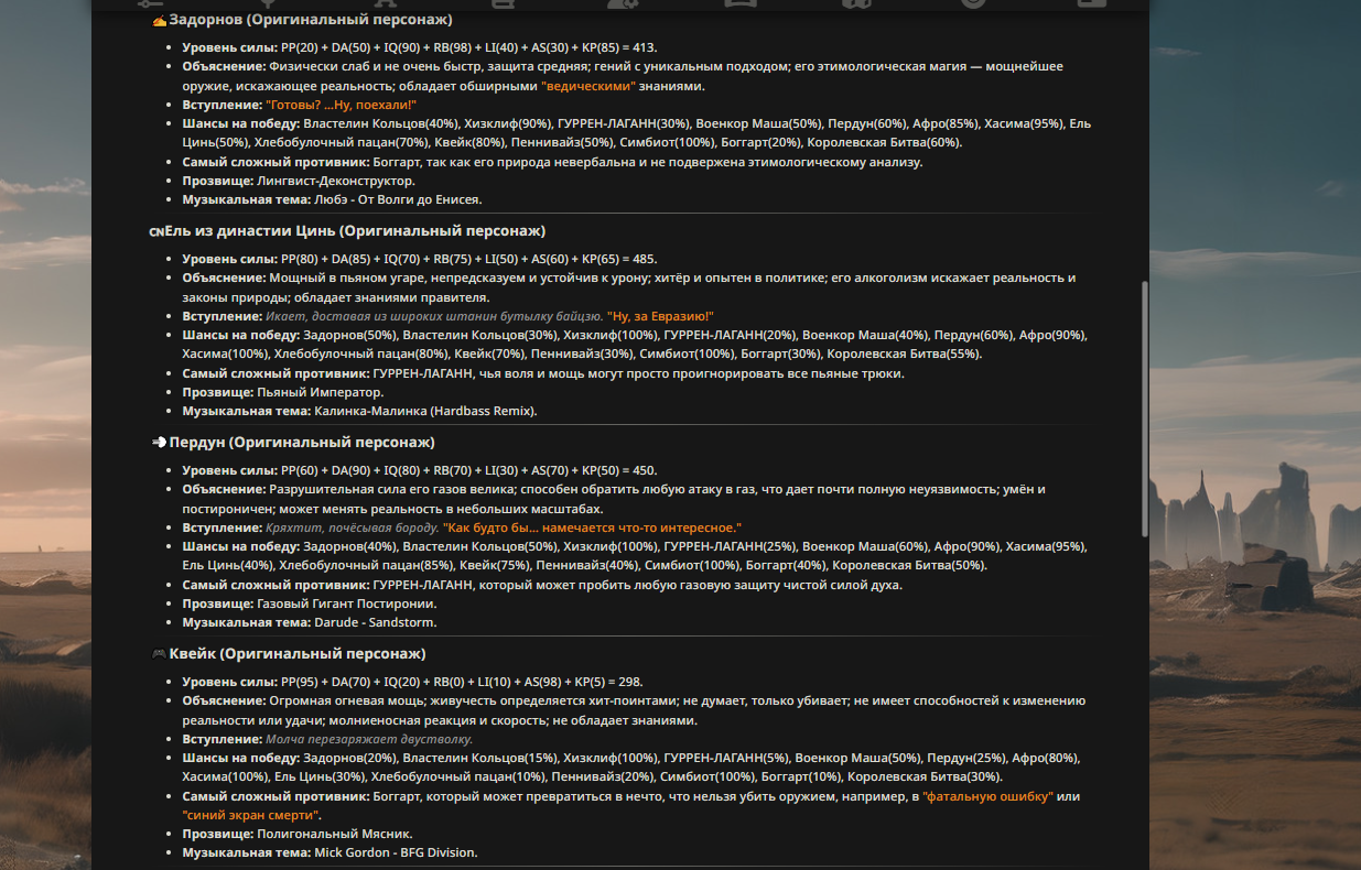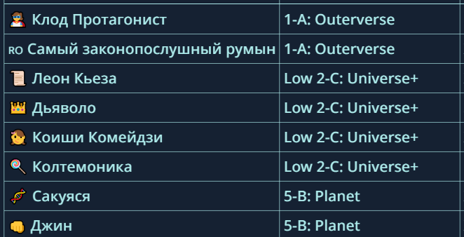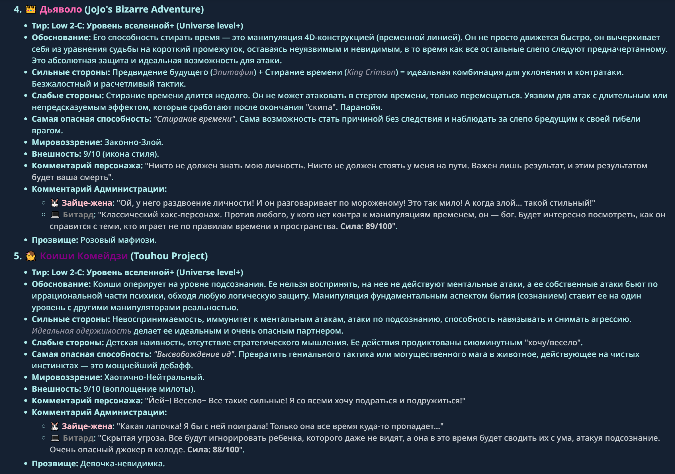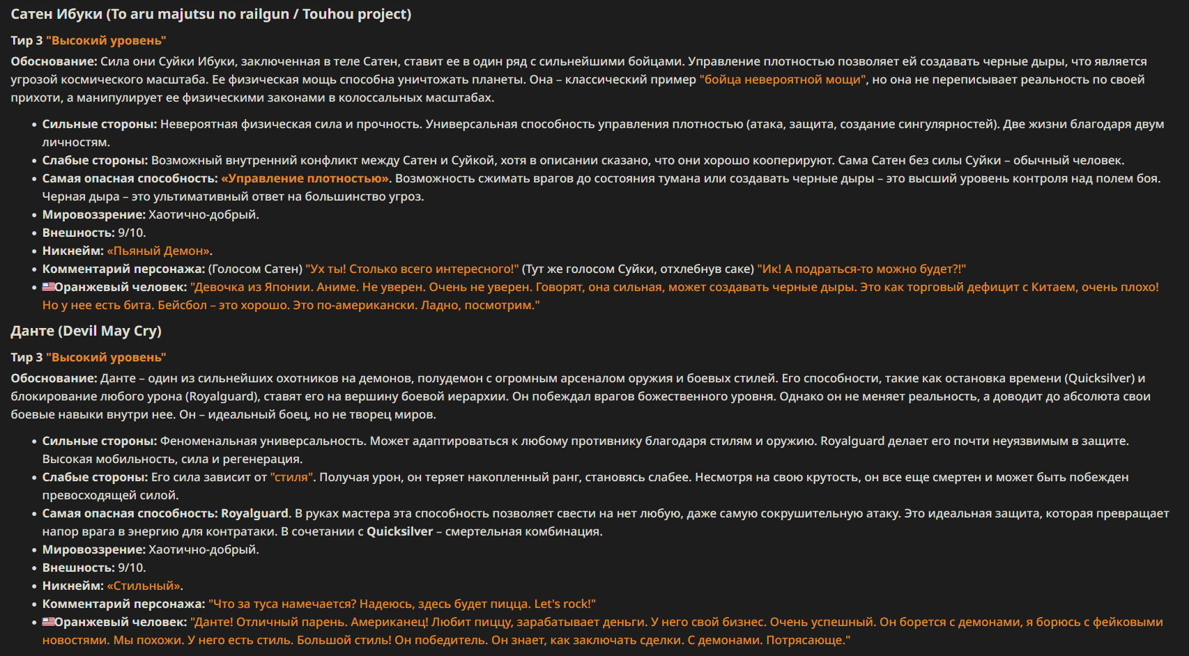 » Если вы заметили, что в список попал слишком имбовый персонаж то не бойтесь об этом написать.