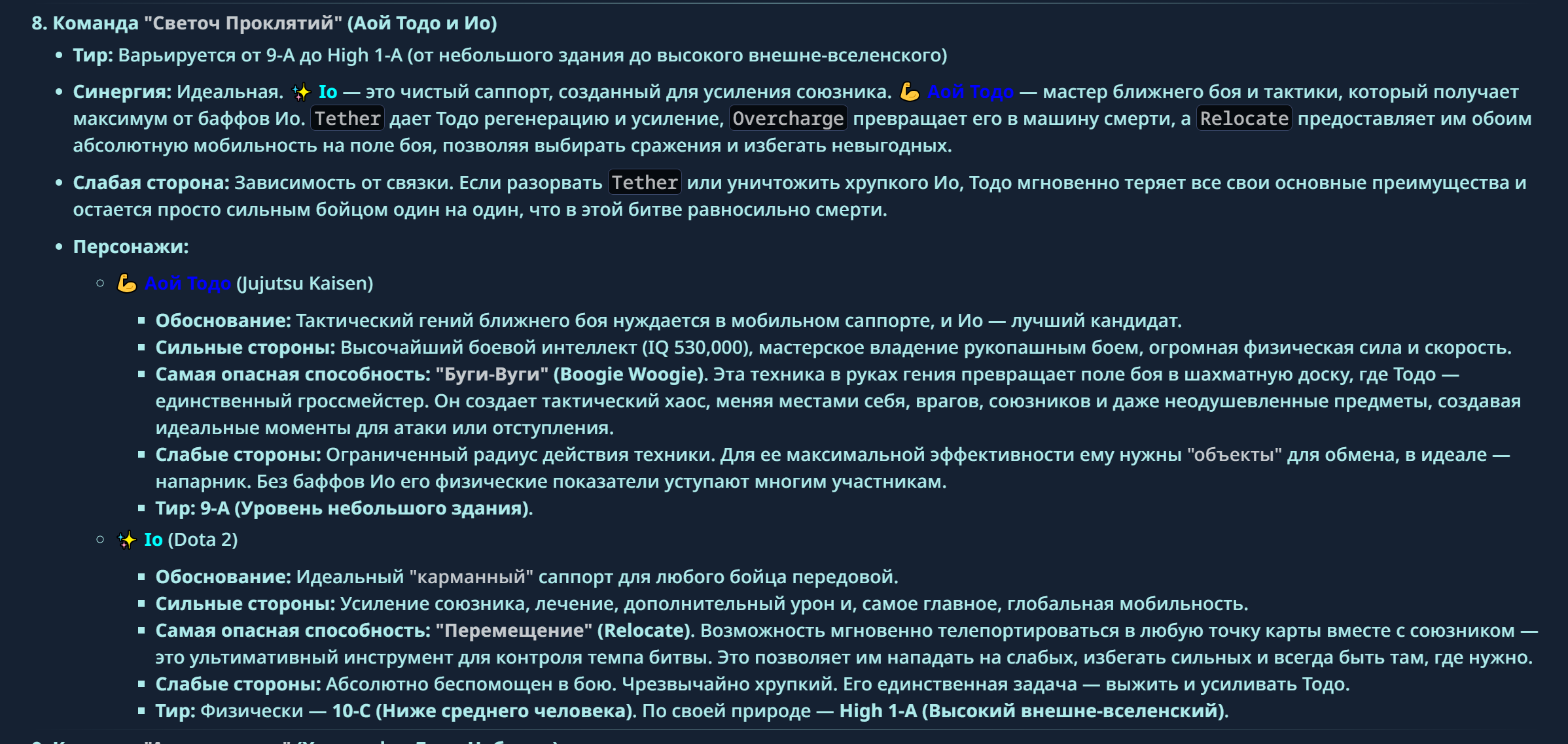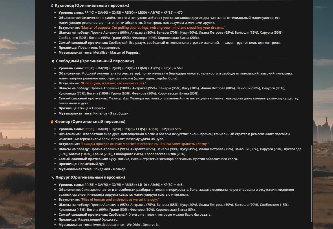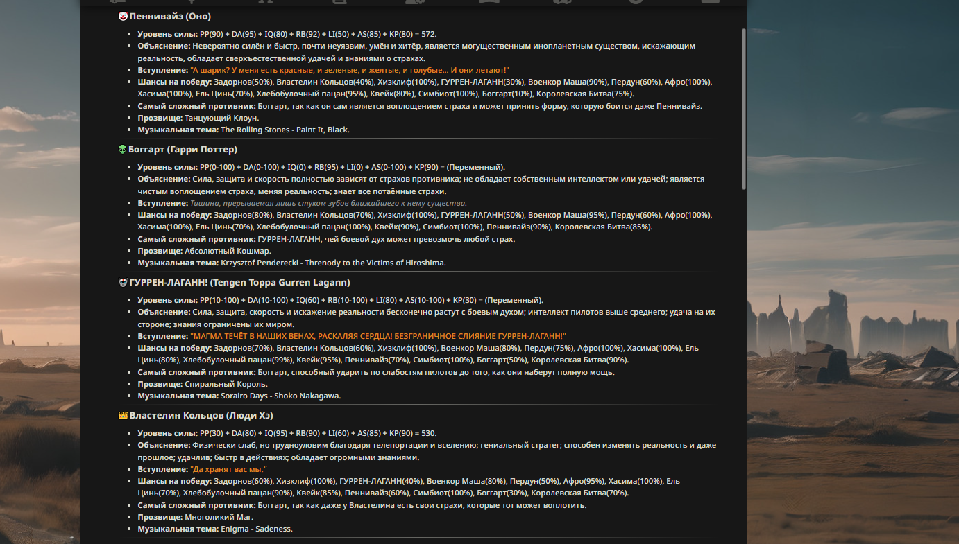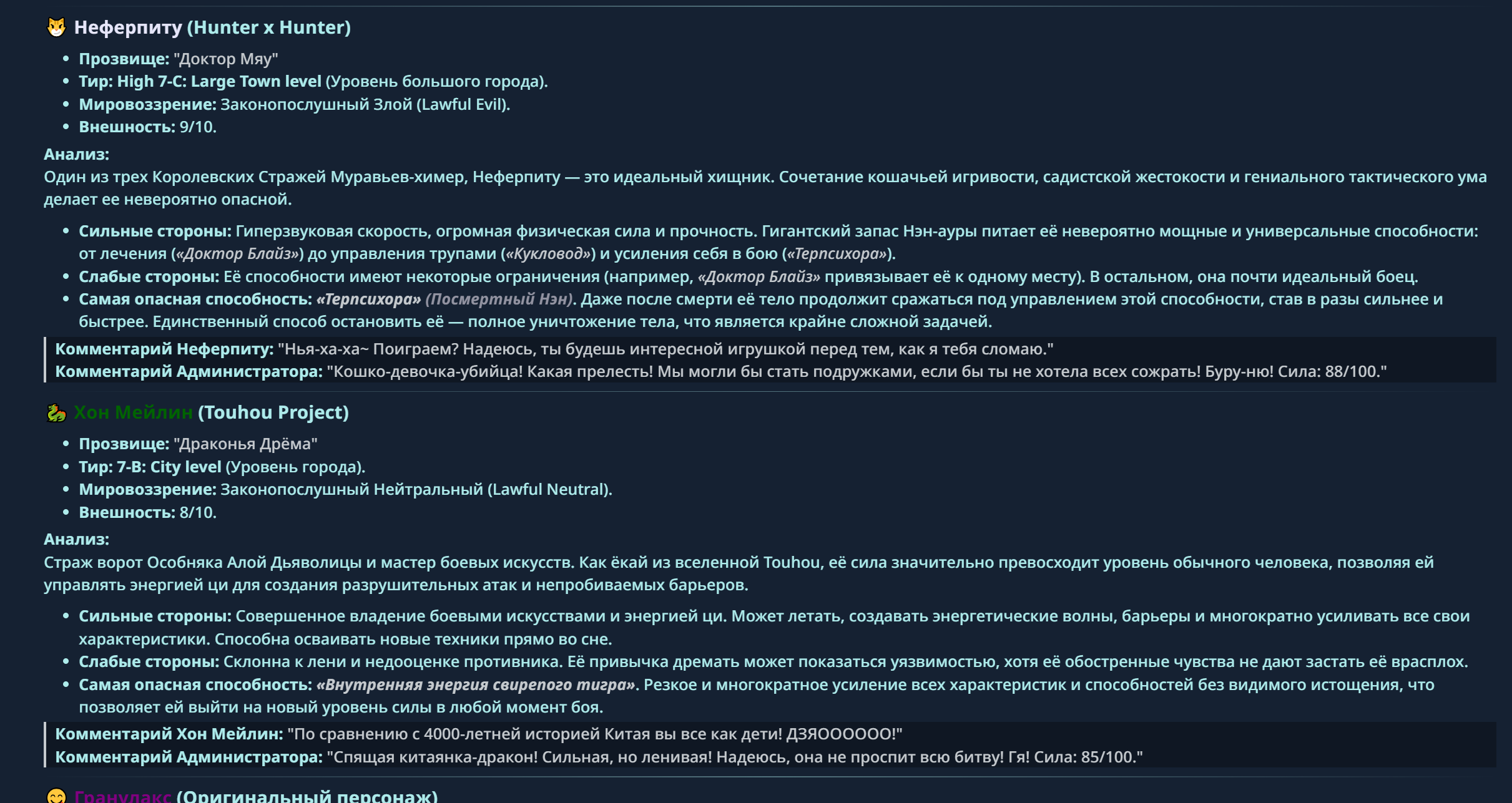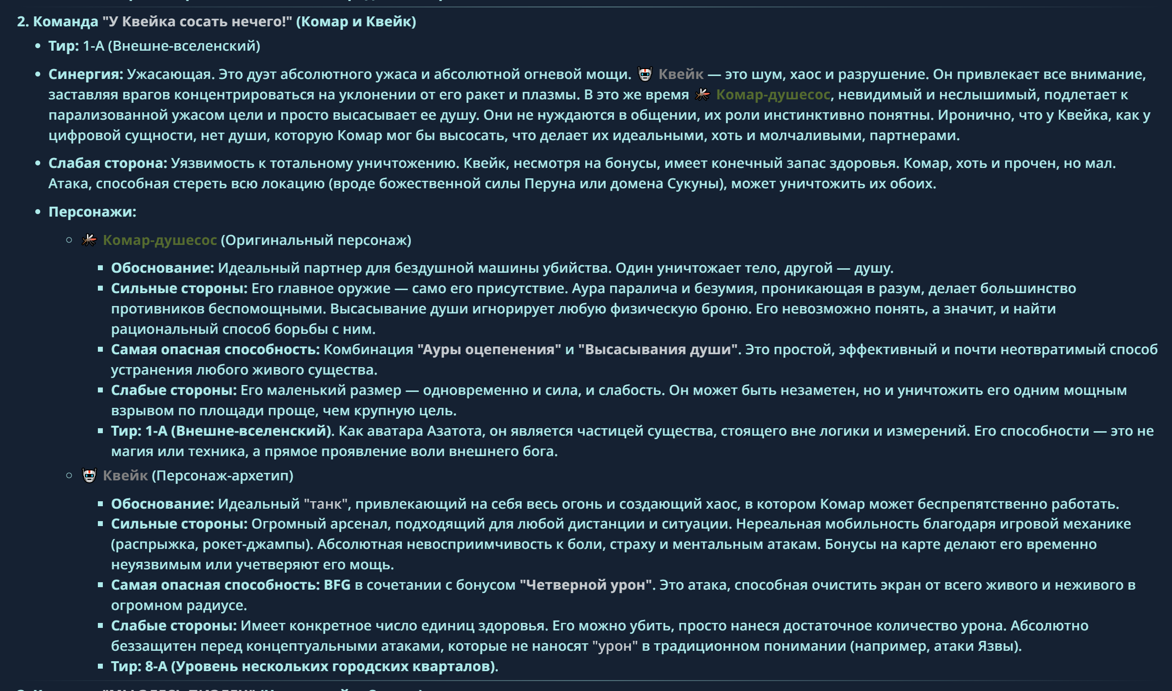 » Если вы заметили, что в список попал слишком имбовый персонаж то не бойтесь об этом написать.