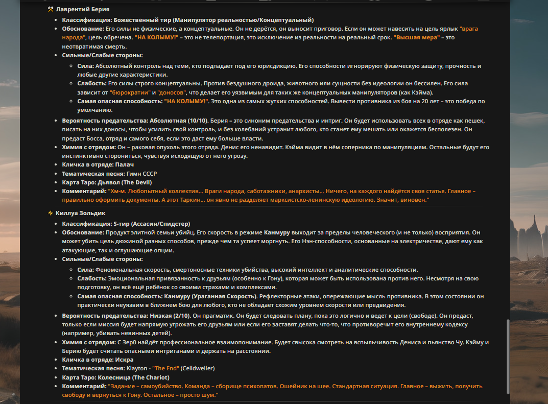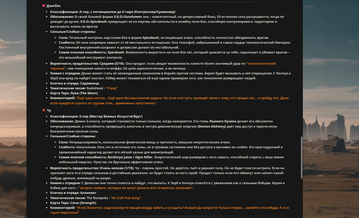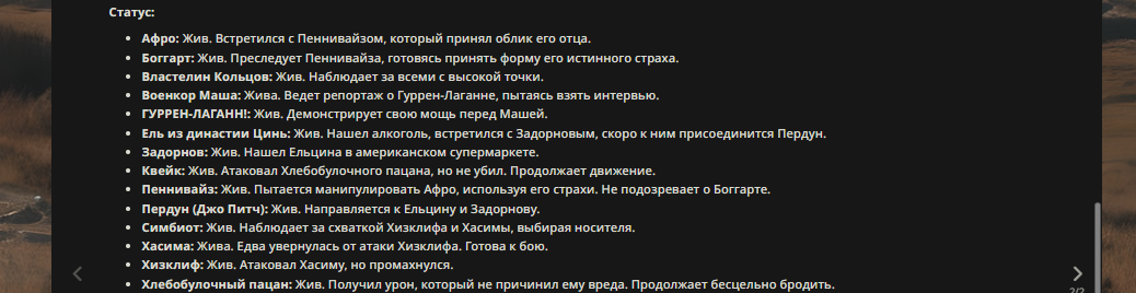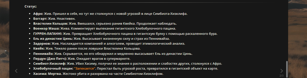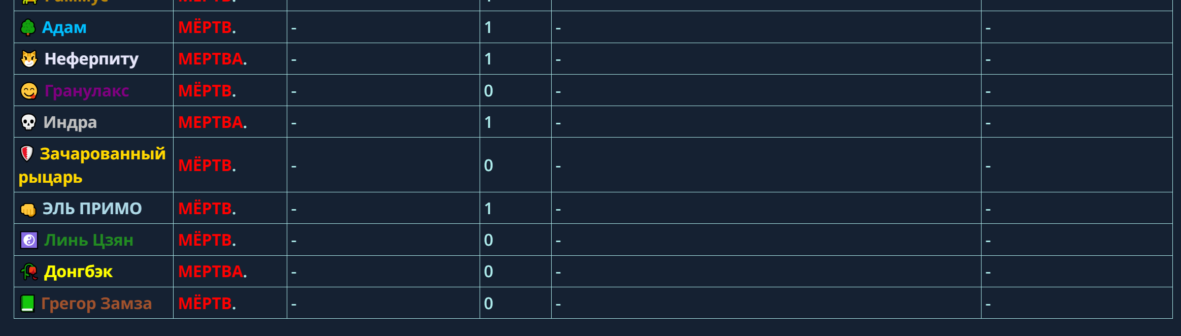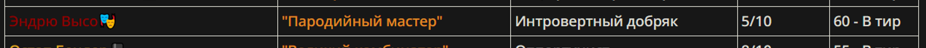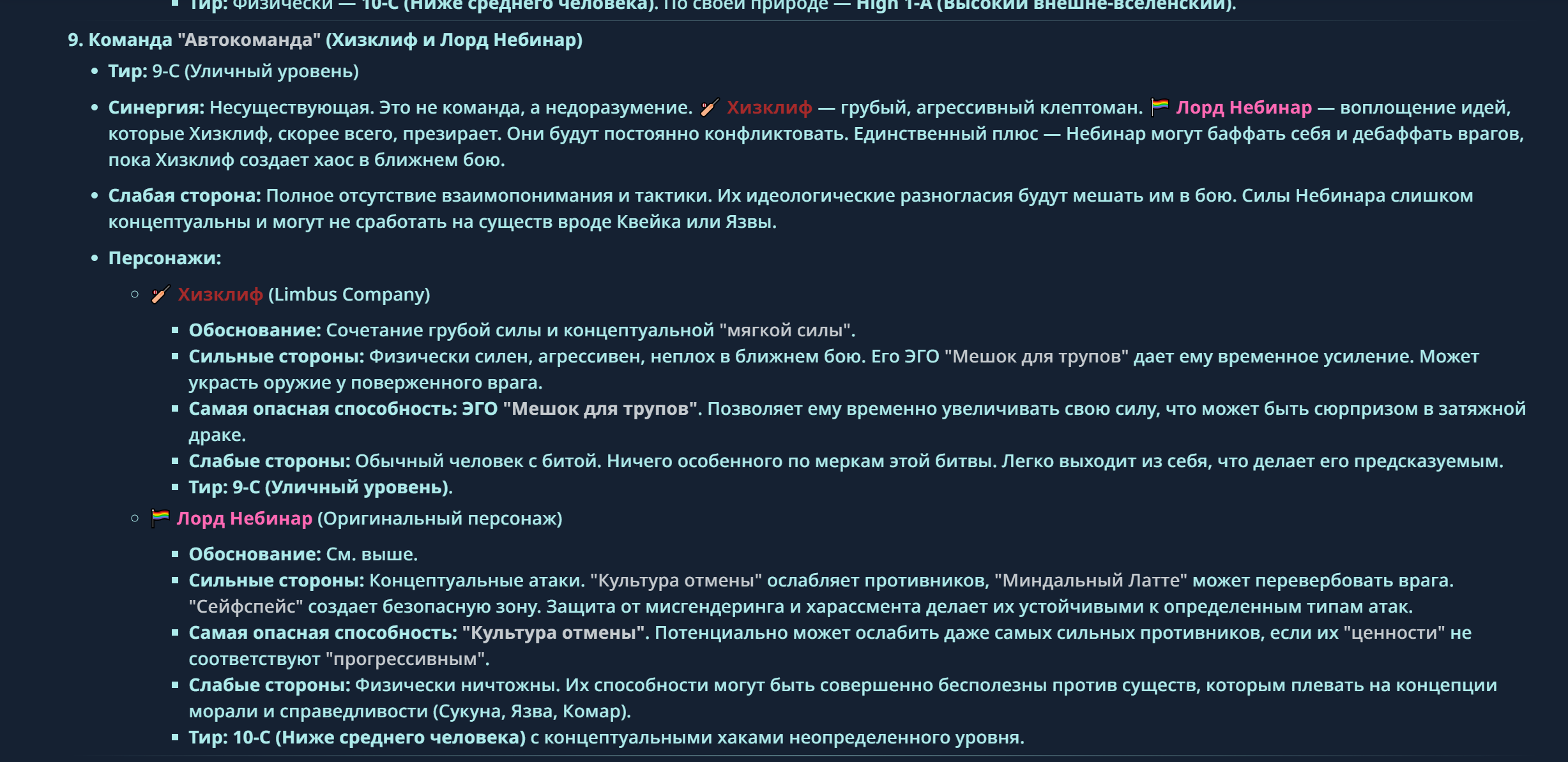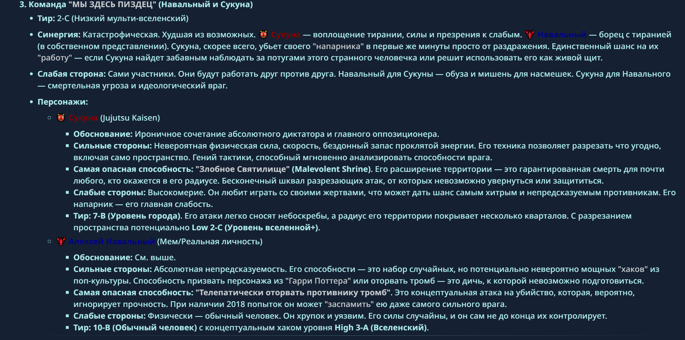 » Если вы заметили, что в список попал слишком имбовый персонаж то не бойтесь об этом написать.