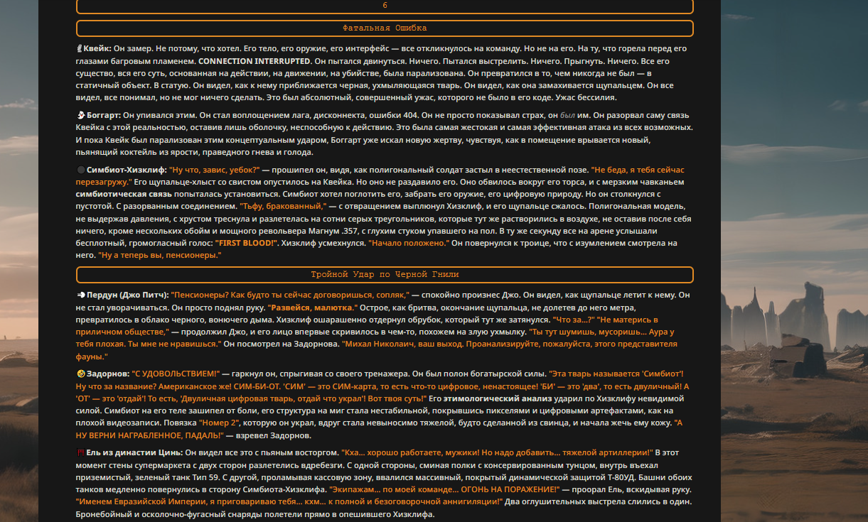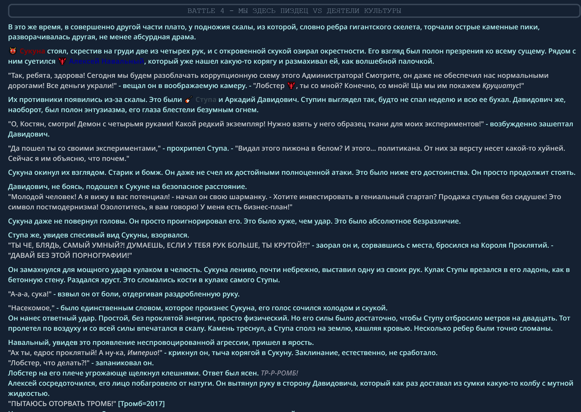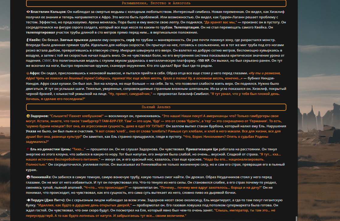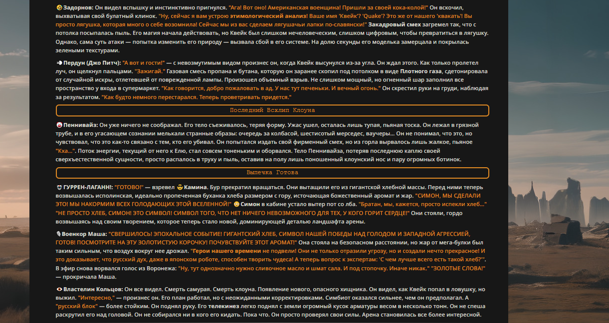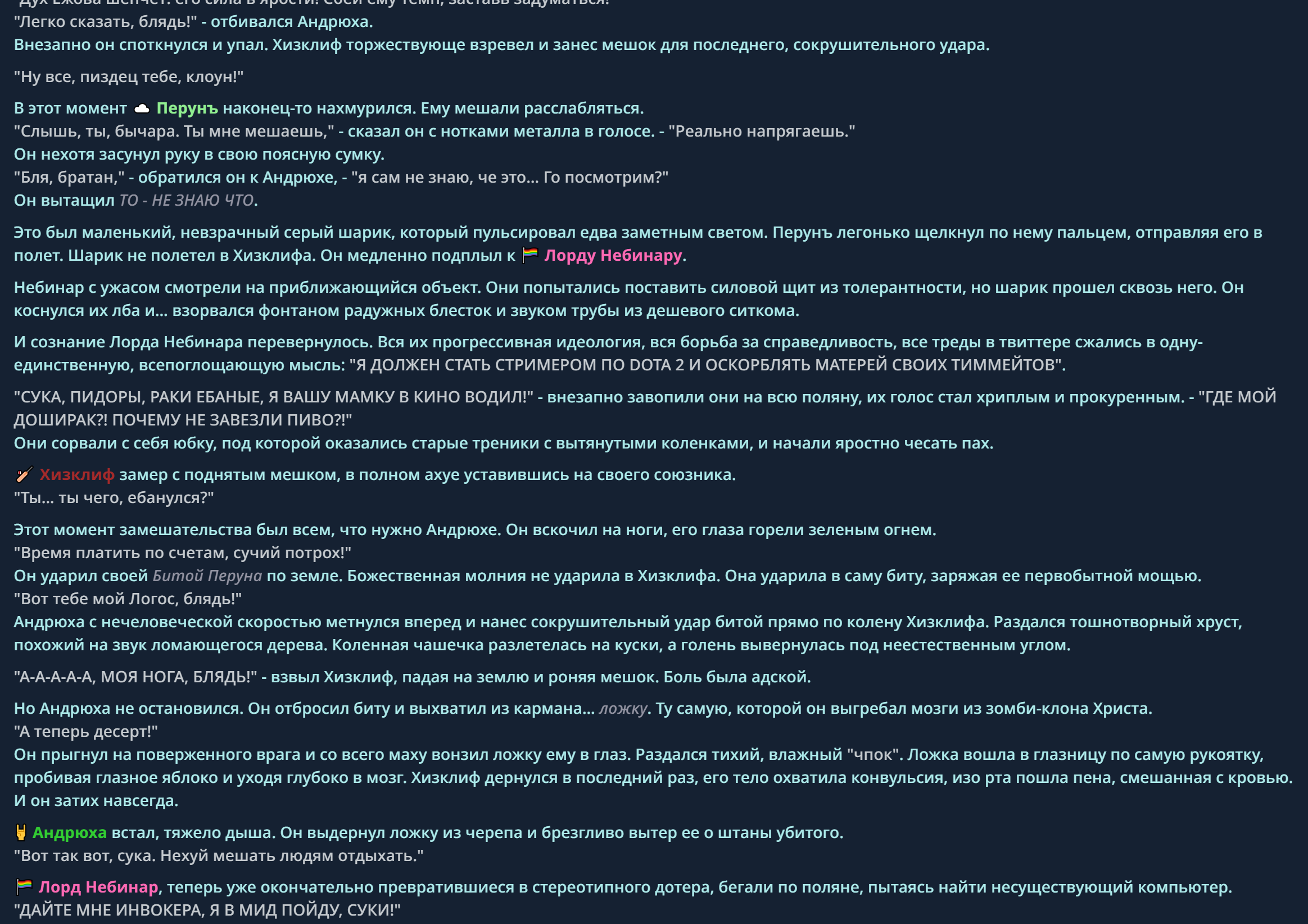 Серия экспериментальных игр от Танкоёба Витали пронеслась по треду и даже зацепила /b/ точнейшей рекреацией событий не столь далёких дней под Бахмутом.. впрочем, редакция предлагает оценить передел России времён святых 90-х в данной шедевральной игре >>842288 →, к прочтению обязательна! 💥