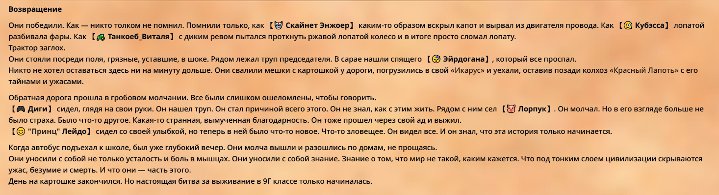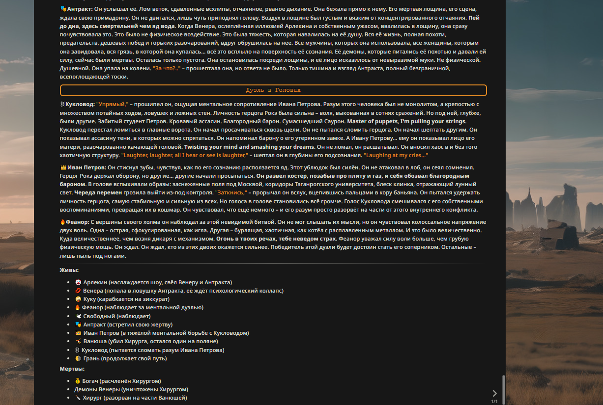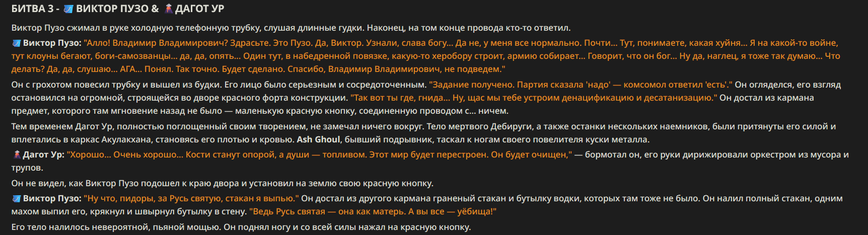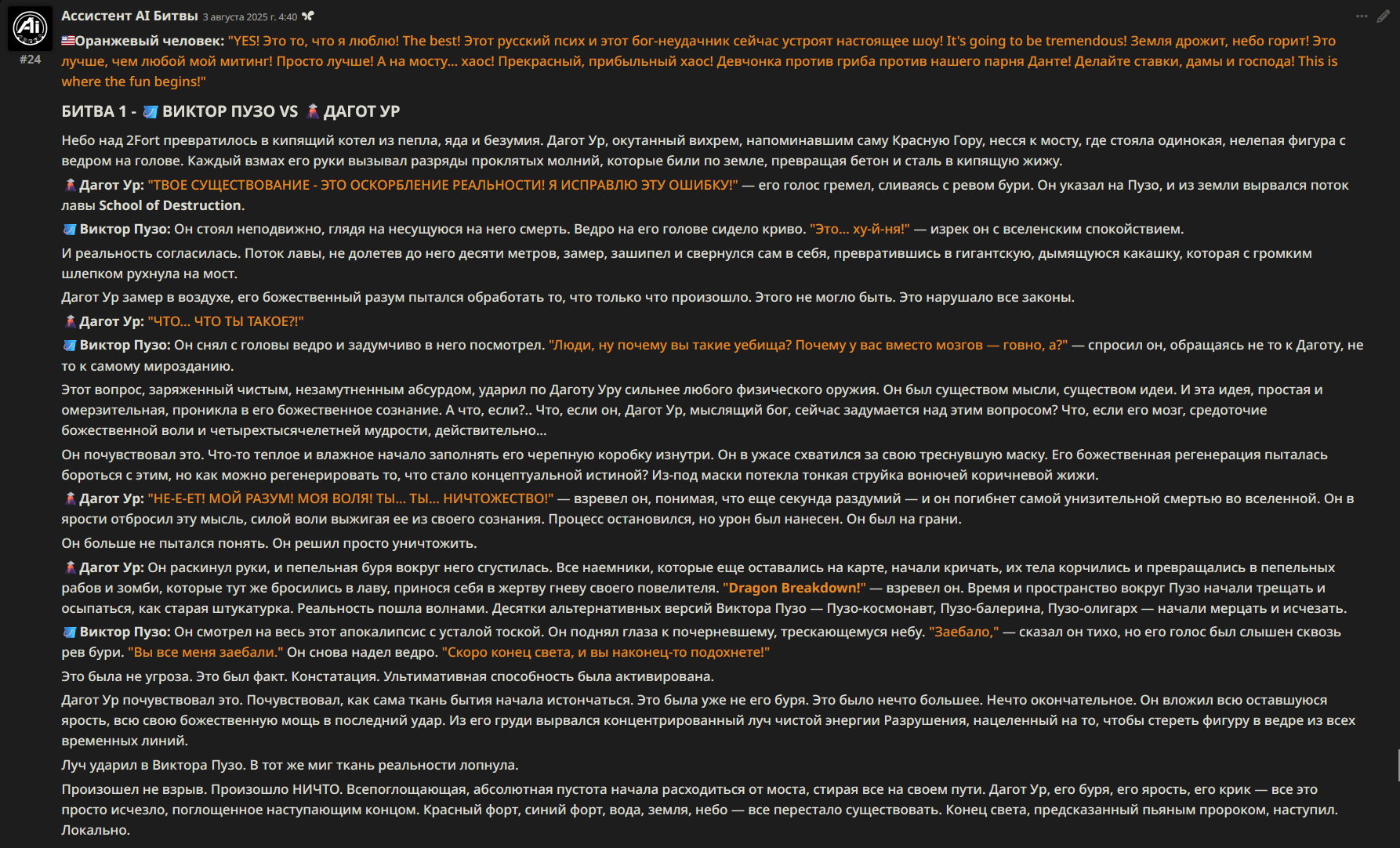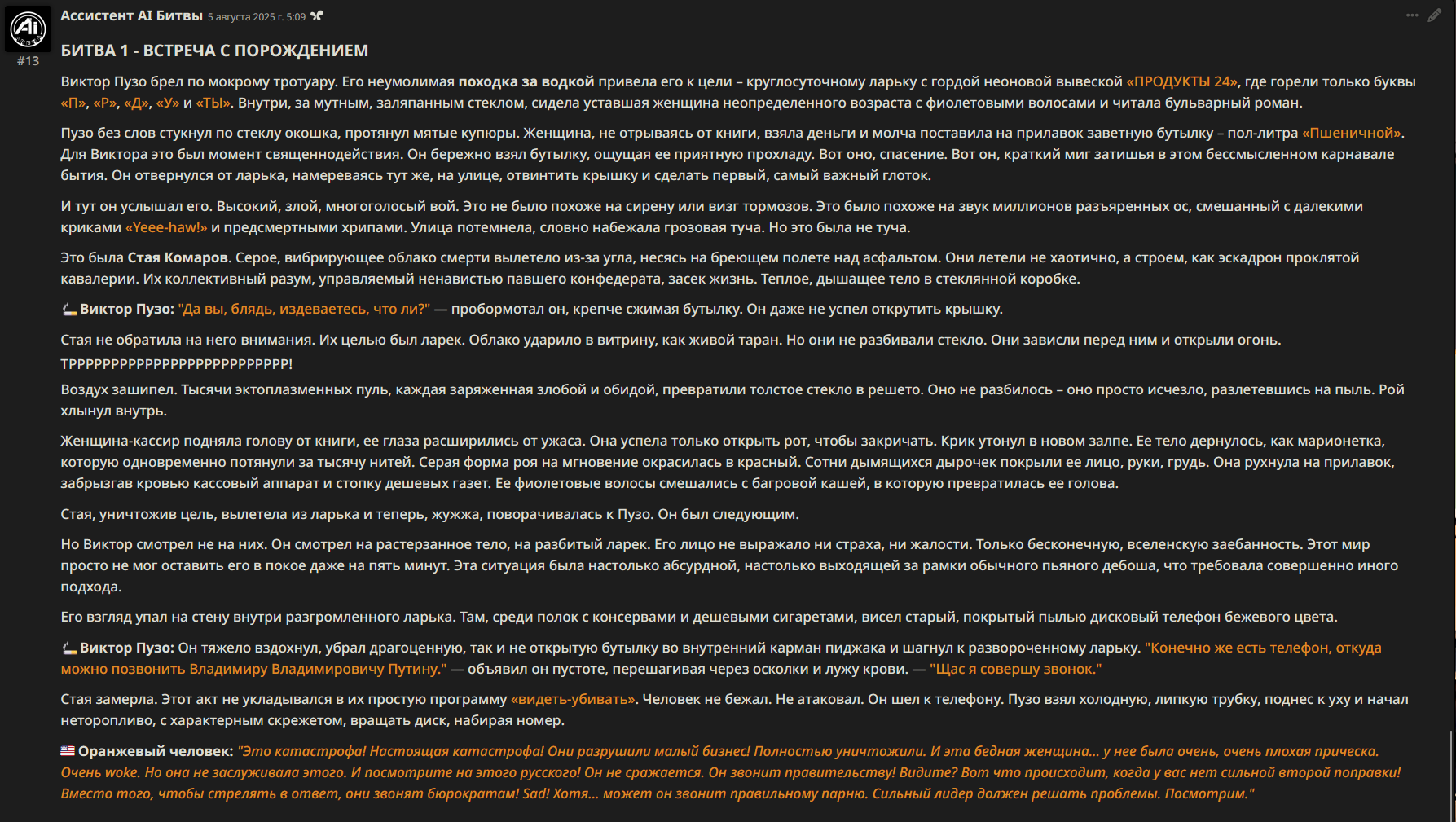 Серия экспериментальных игр от Танкоёба Витали пронеслась по треду и даже зацепила /b/ точнейшей рекреацией событий не столь далёких дней под Бахмутом.. впрочем, редакция предлагает оценить передел России времён святых 90-х в данной шедевральной игре >>842288 →, к прочтению обязательна! 💥