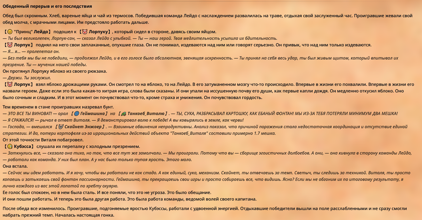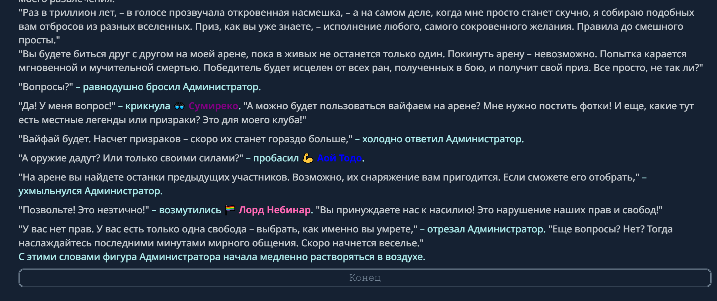 » Не будьте слишком назойливы и эгоцентричны. Уважайте других игроков и ведущих.