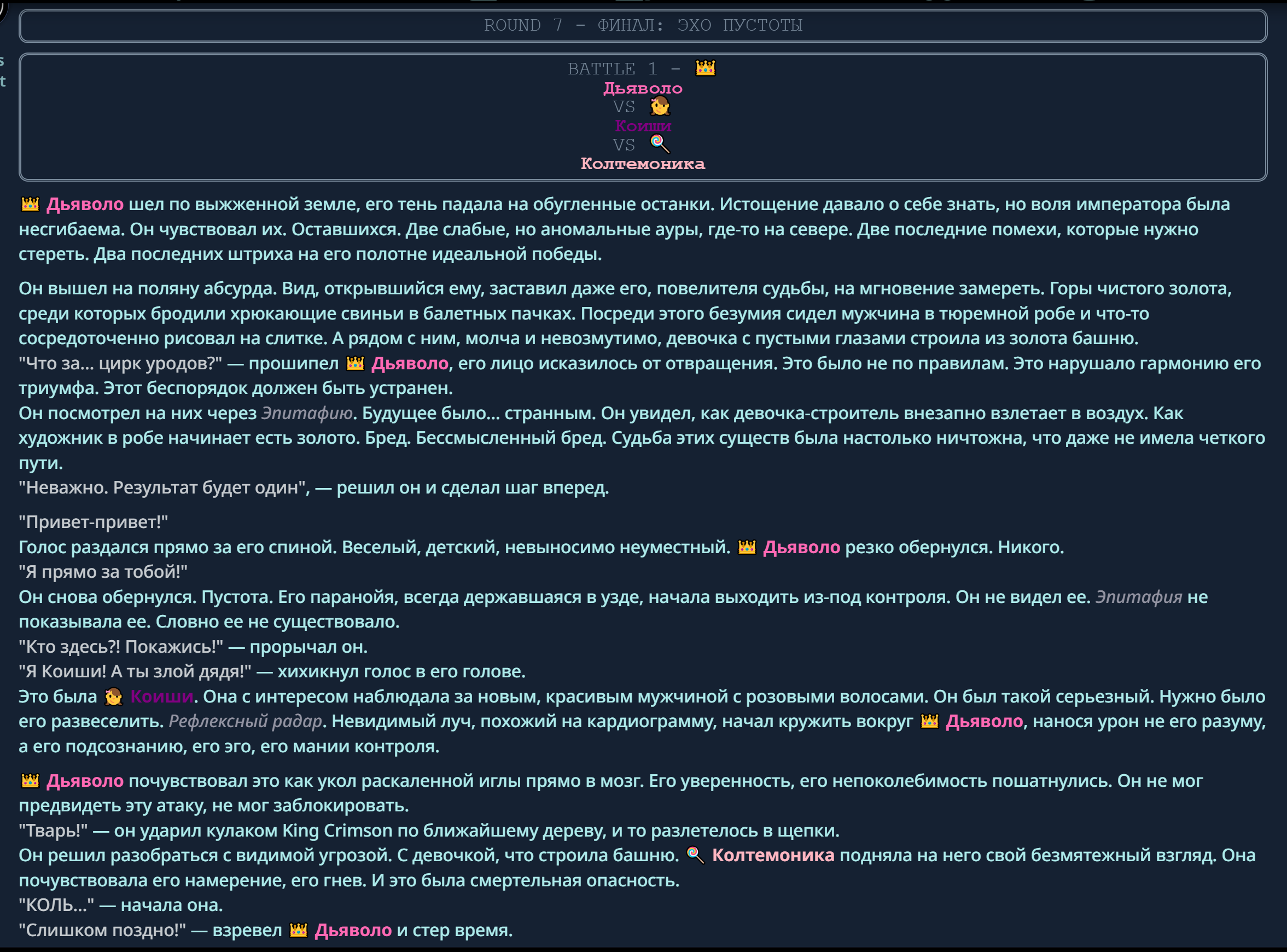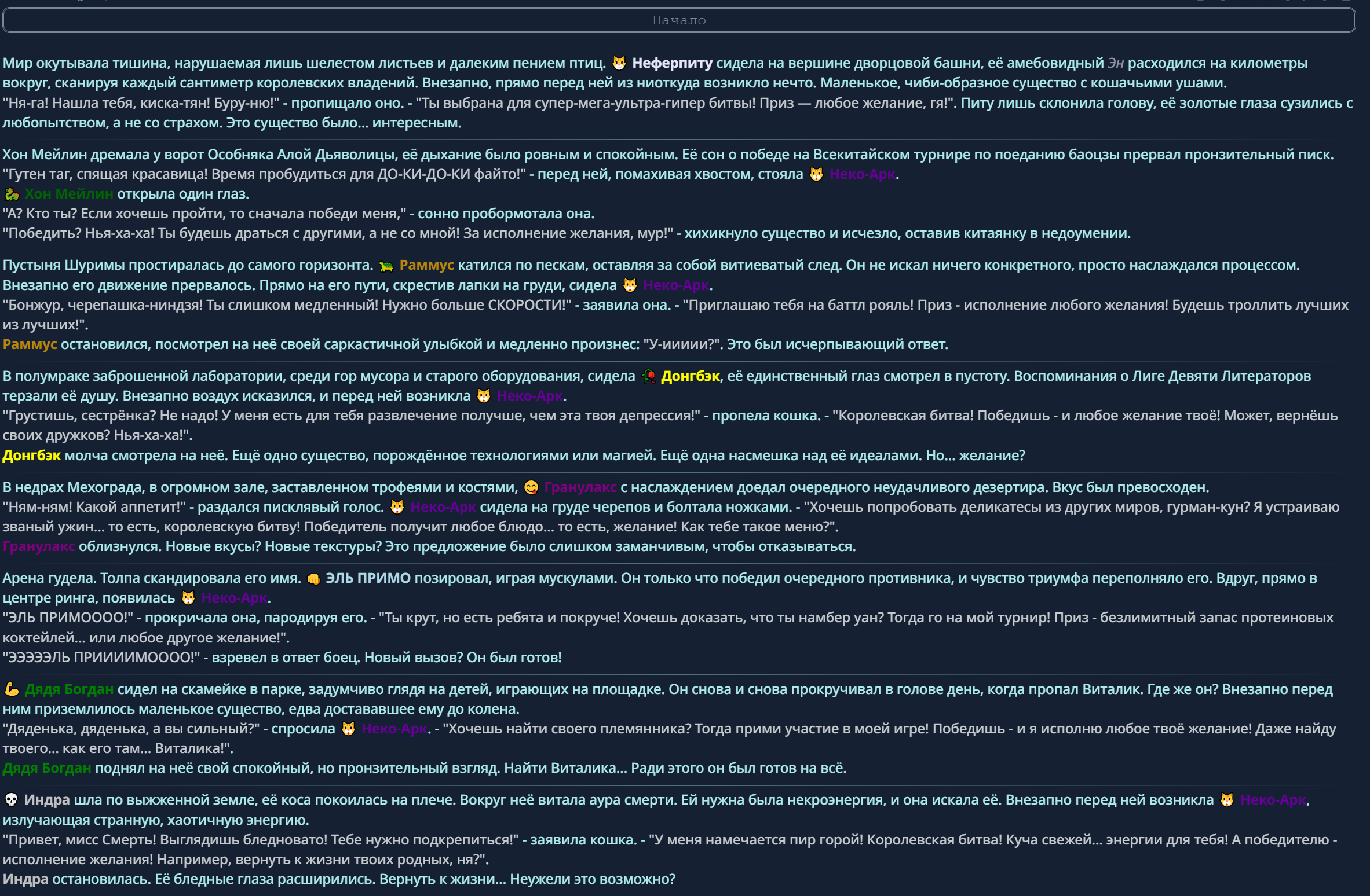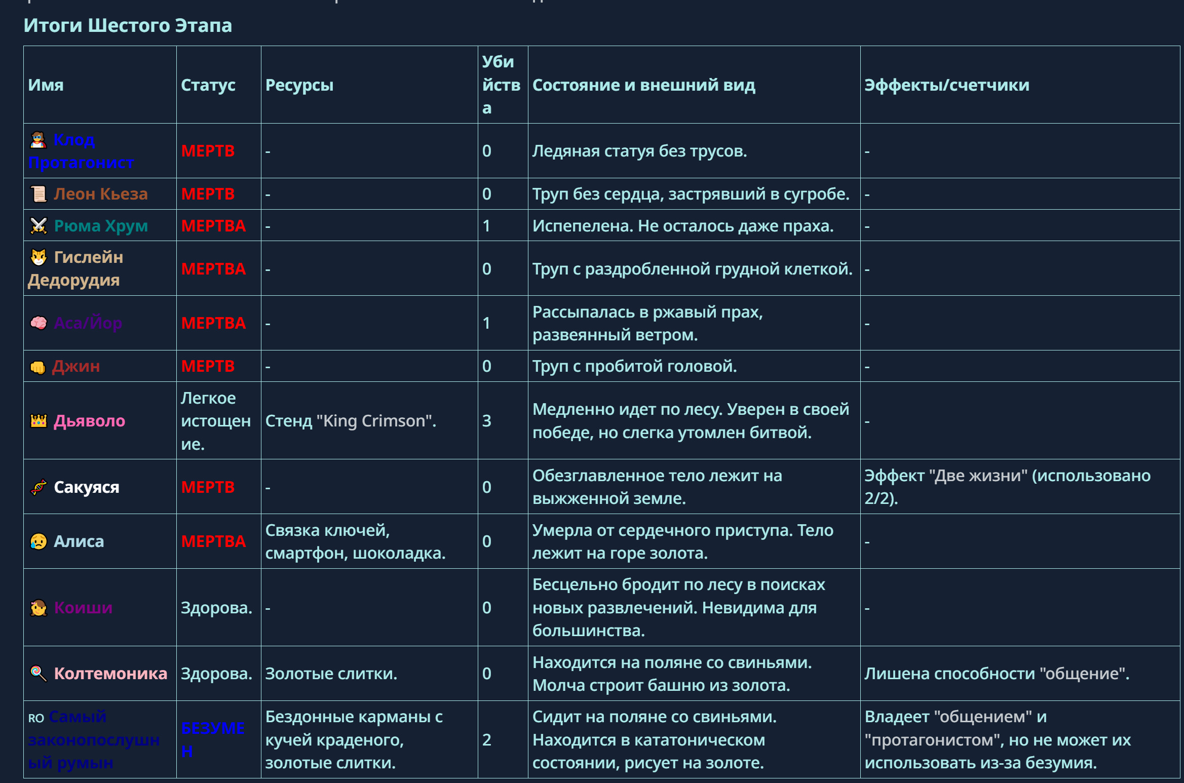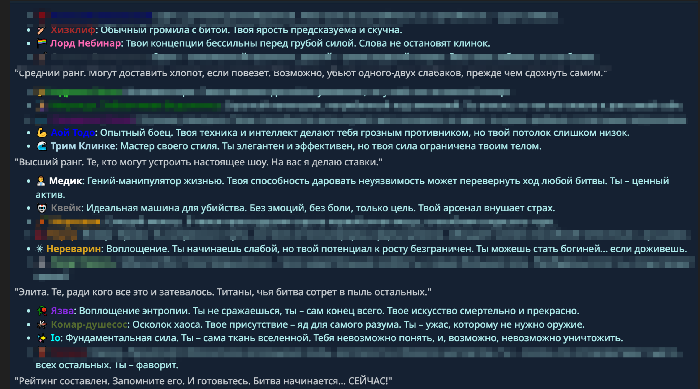 6} Набор персонажей полностью закрывается после начала боя и открывается только когда он закончится и будет объявлен новый набор. Если персонаж вкинут до набора - не обижайтесь, что его не приняли.