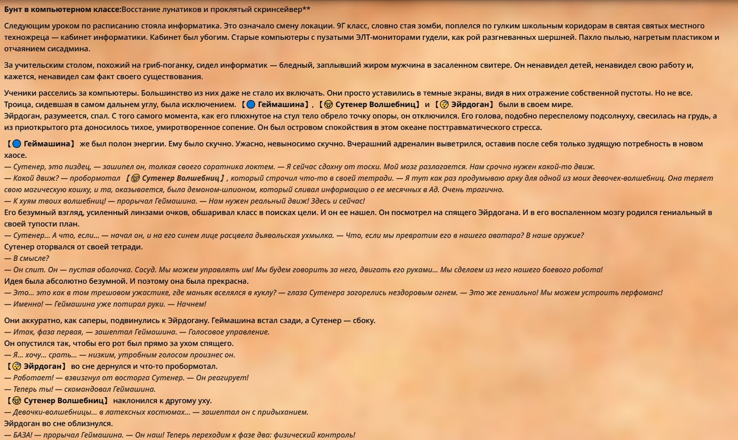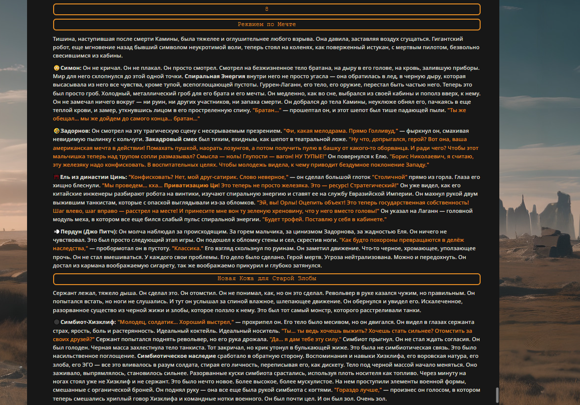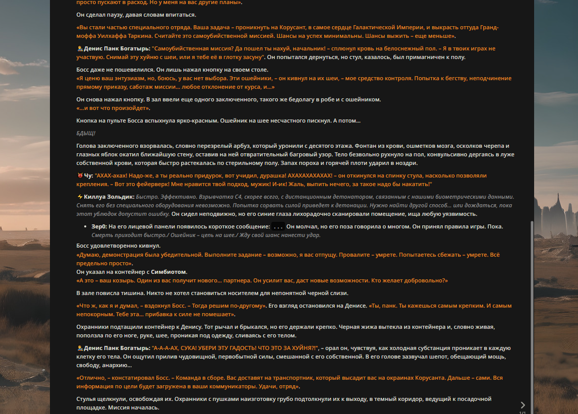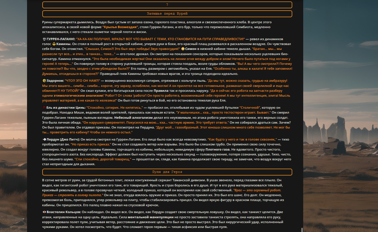 Переписанный пресет Скайнета с дополнениями. Больший упор на сюжет, управляется одной рукой без нужды писать в чат.