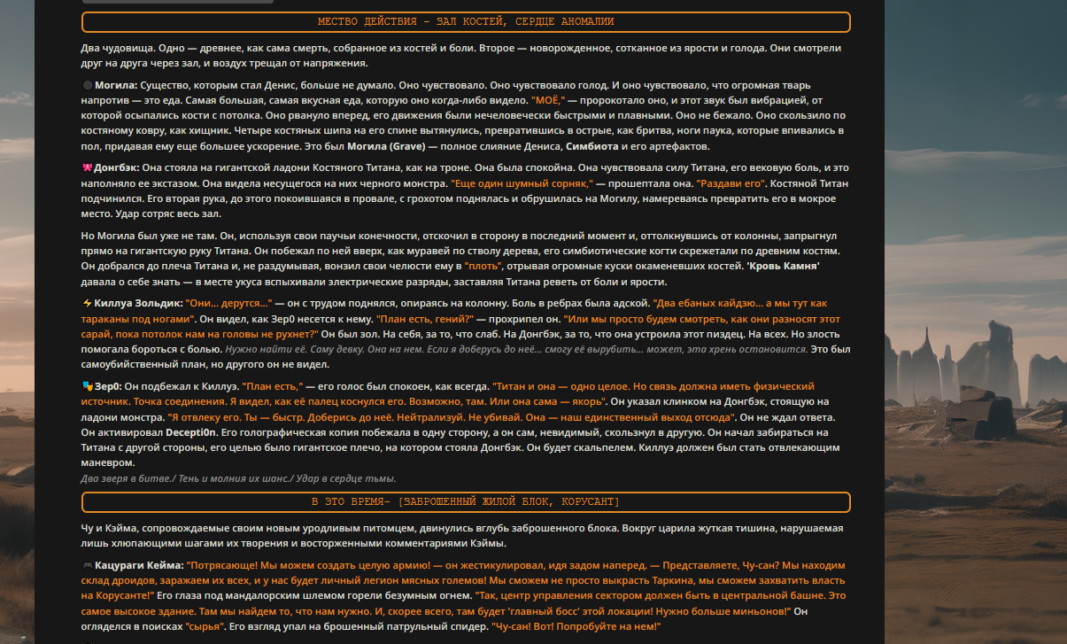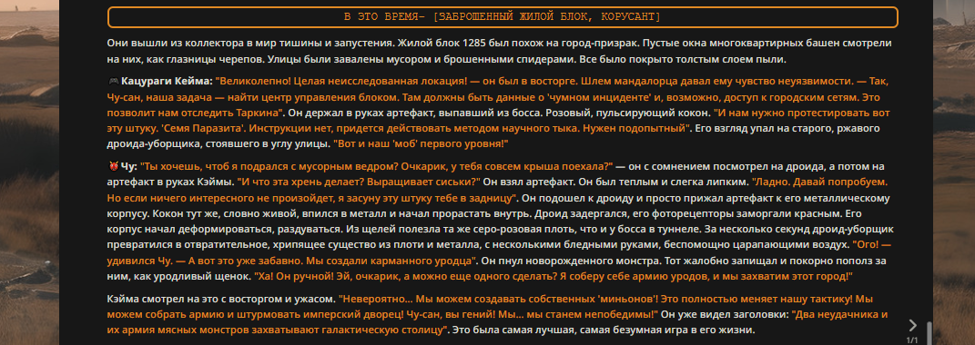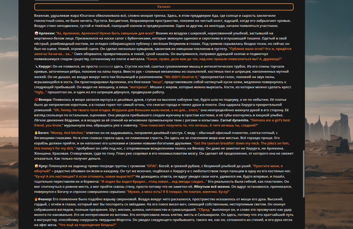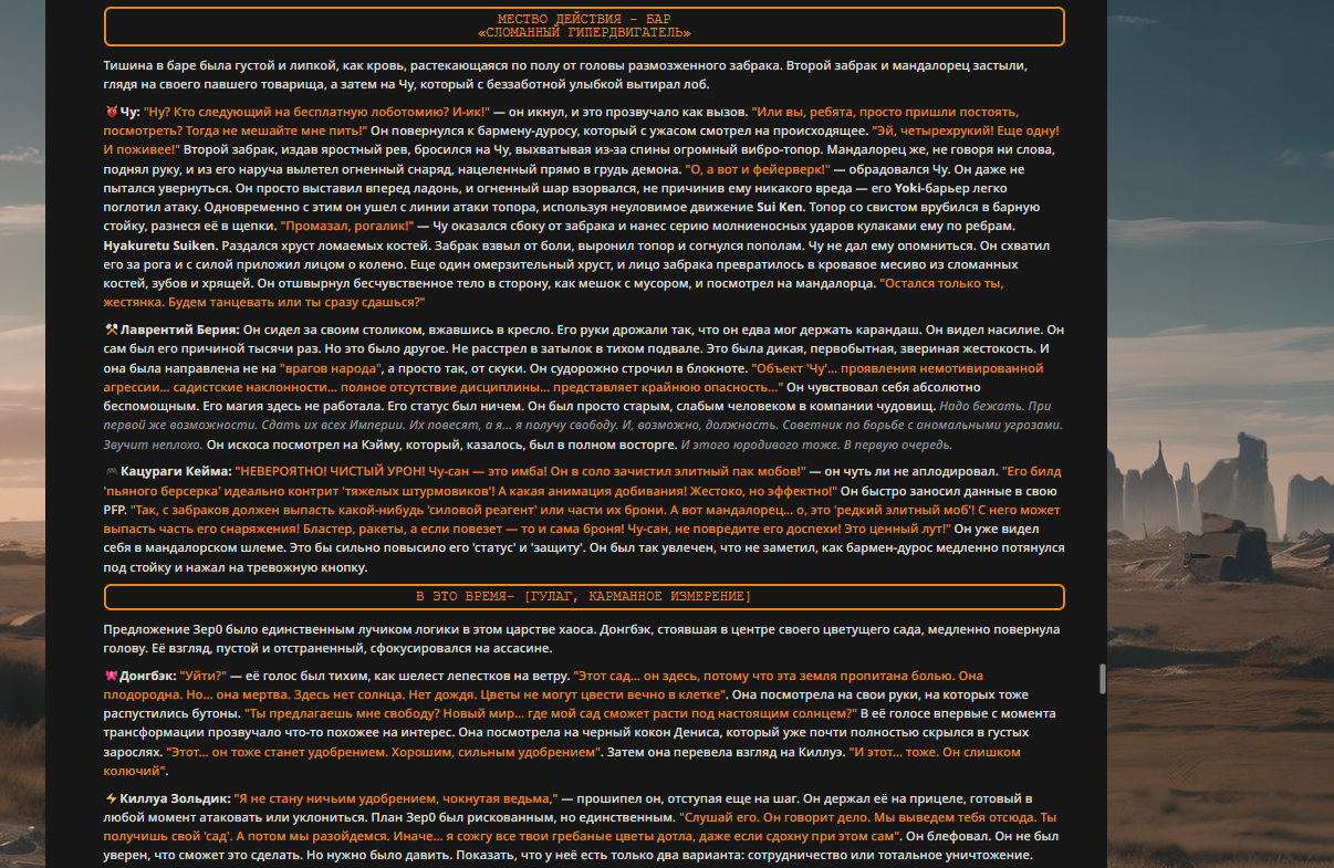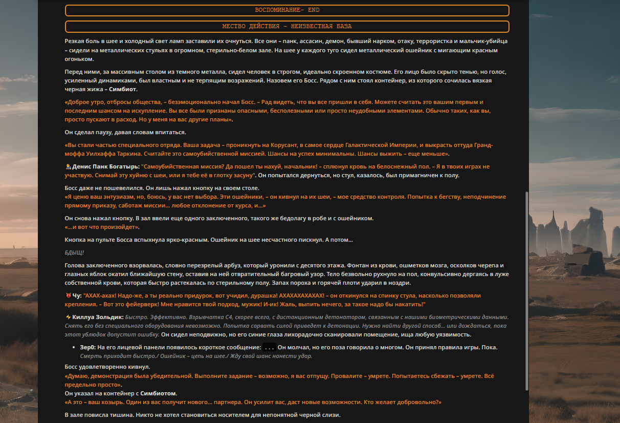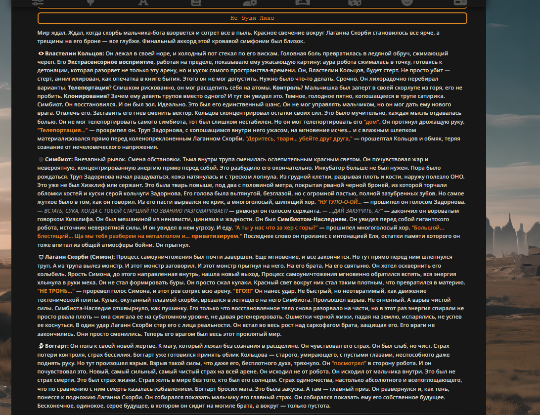 Переписанный пресет Скайнета с дополнениями. Больший упор на сюжет, управляется одной рукой без нужды писать в чат.