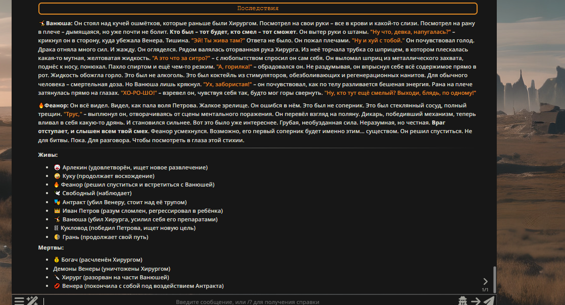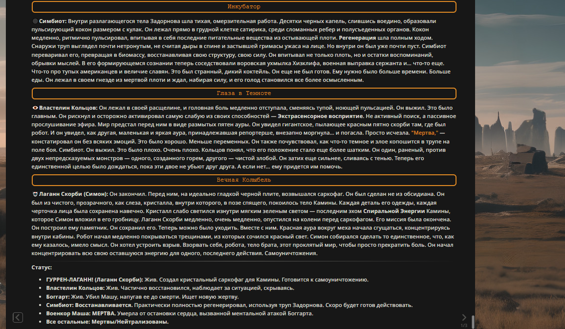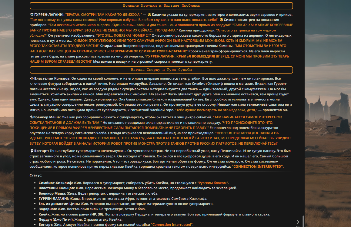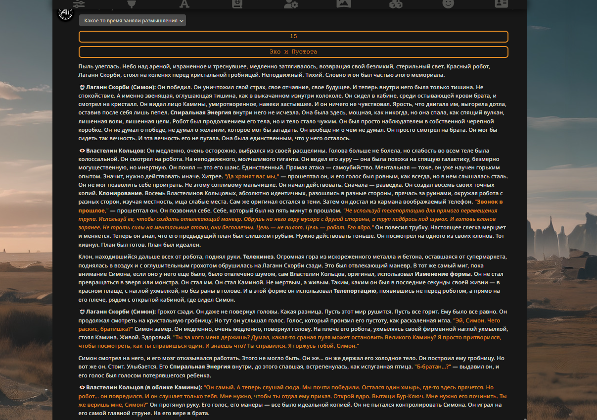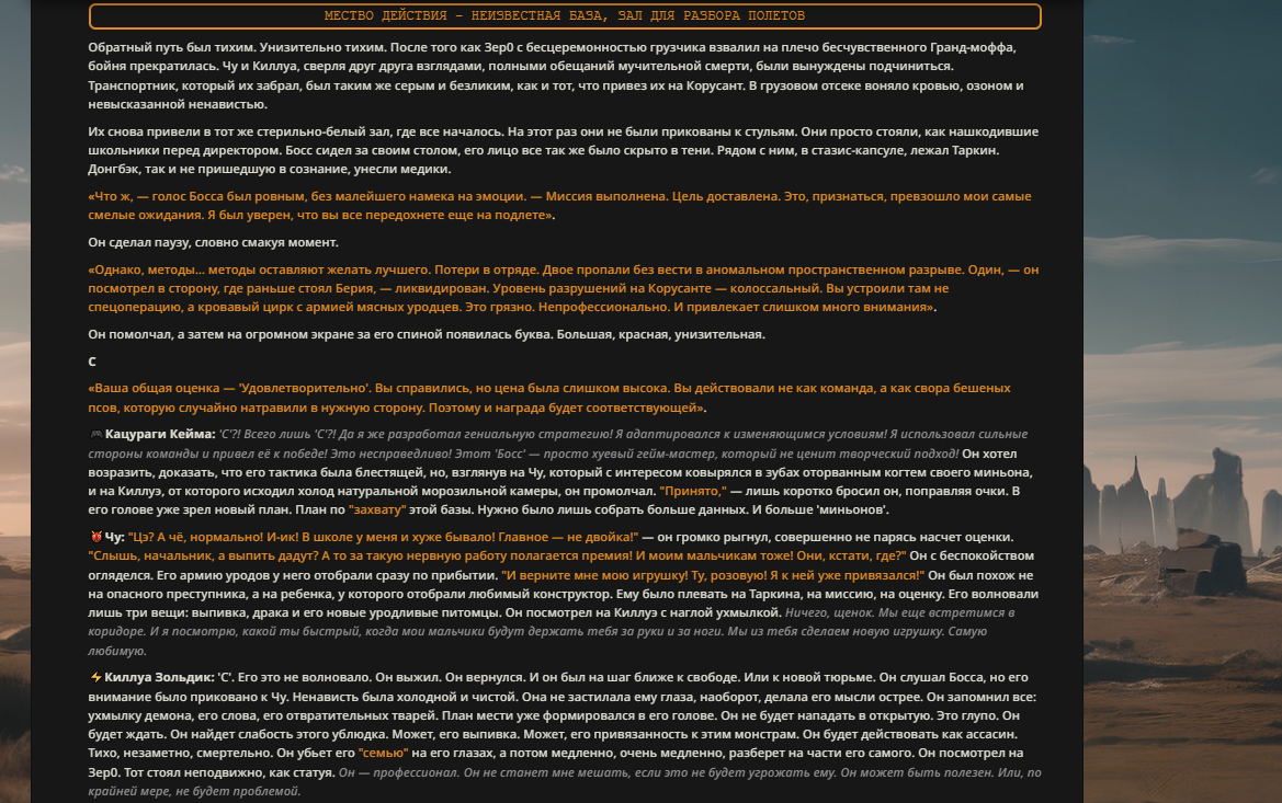 Переписанный пресет Скайнета с дополнениями. Больший упор на сюжет, управляется одной рукой без нужды писать в чат.