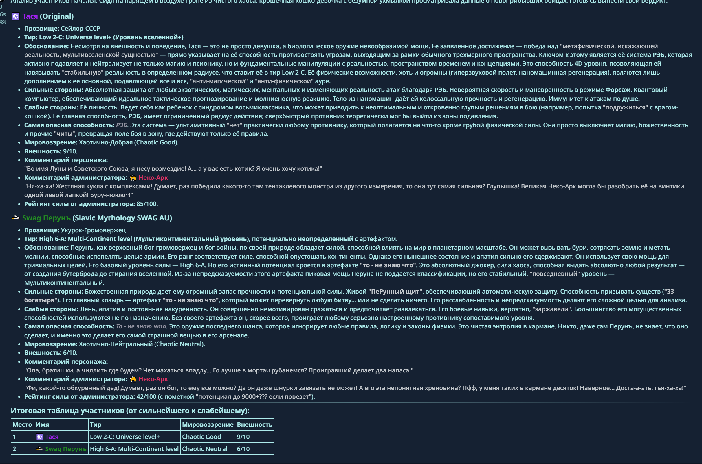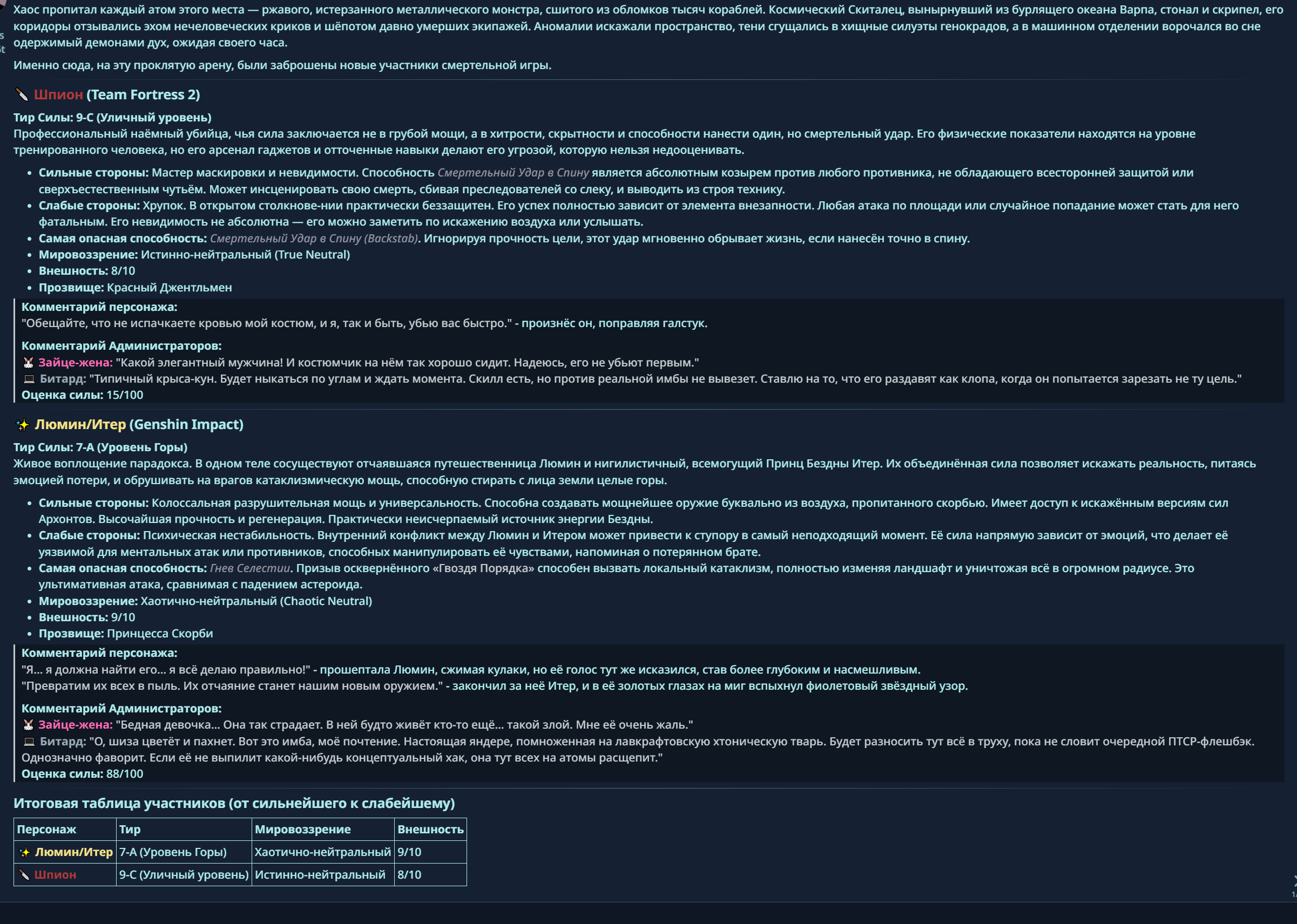 Уровень сил: https://rentry.org/AIBattlesPowerScale