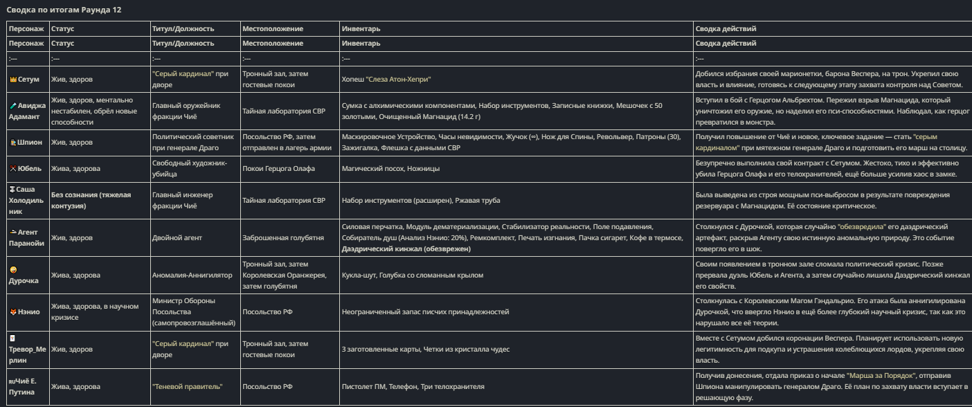 1} Максимум в бою могут участвовать 12 персонажей. После этого набор закрывается и начинается битва.
