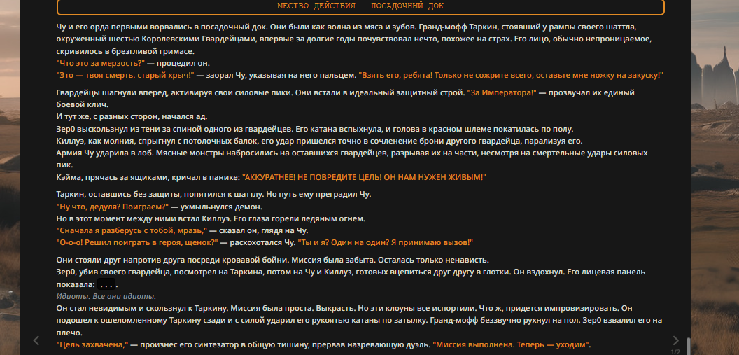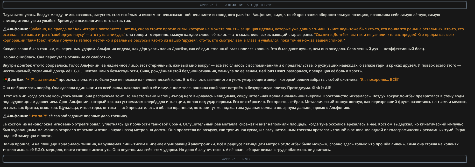 Альтернативный. Максимальный упор на кинематографичность повествования, эмоции и динамичный экшен.
