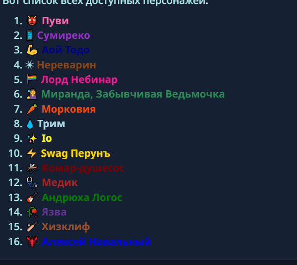 Пишите Кубу, чтобы добавил и ваших персонажей!