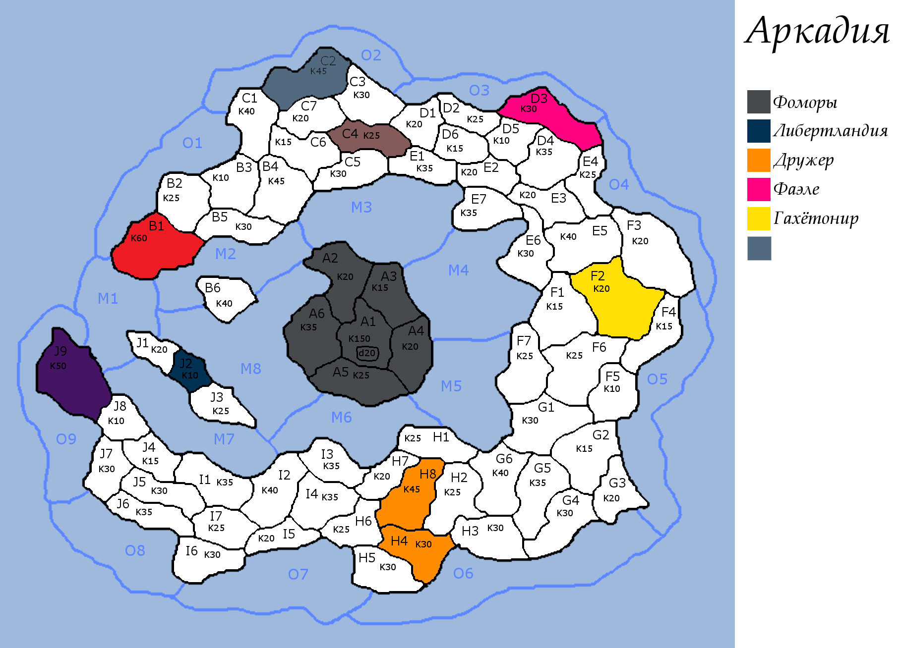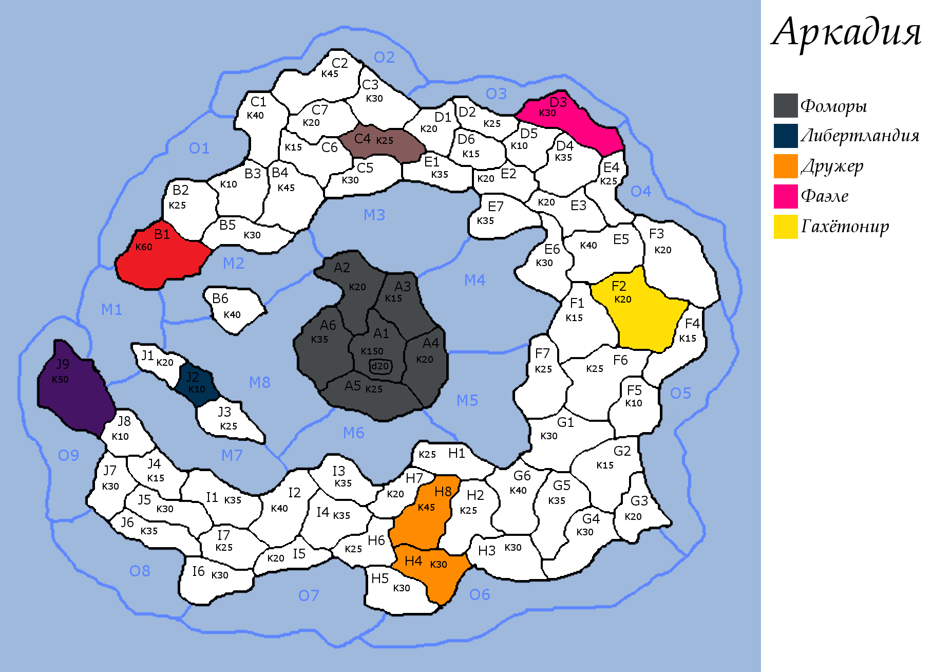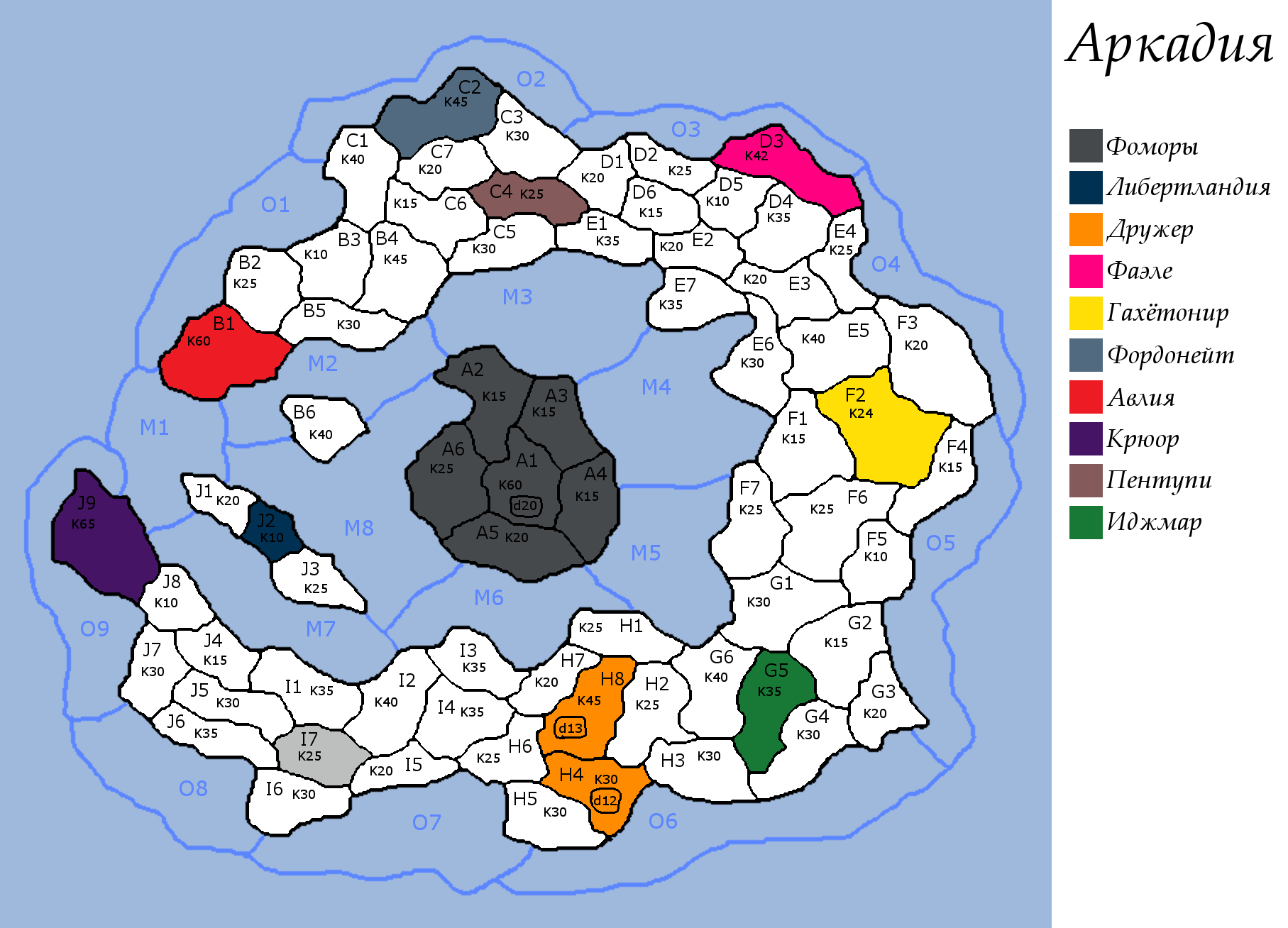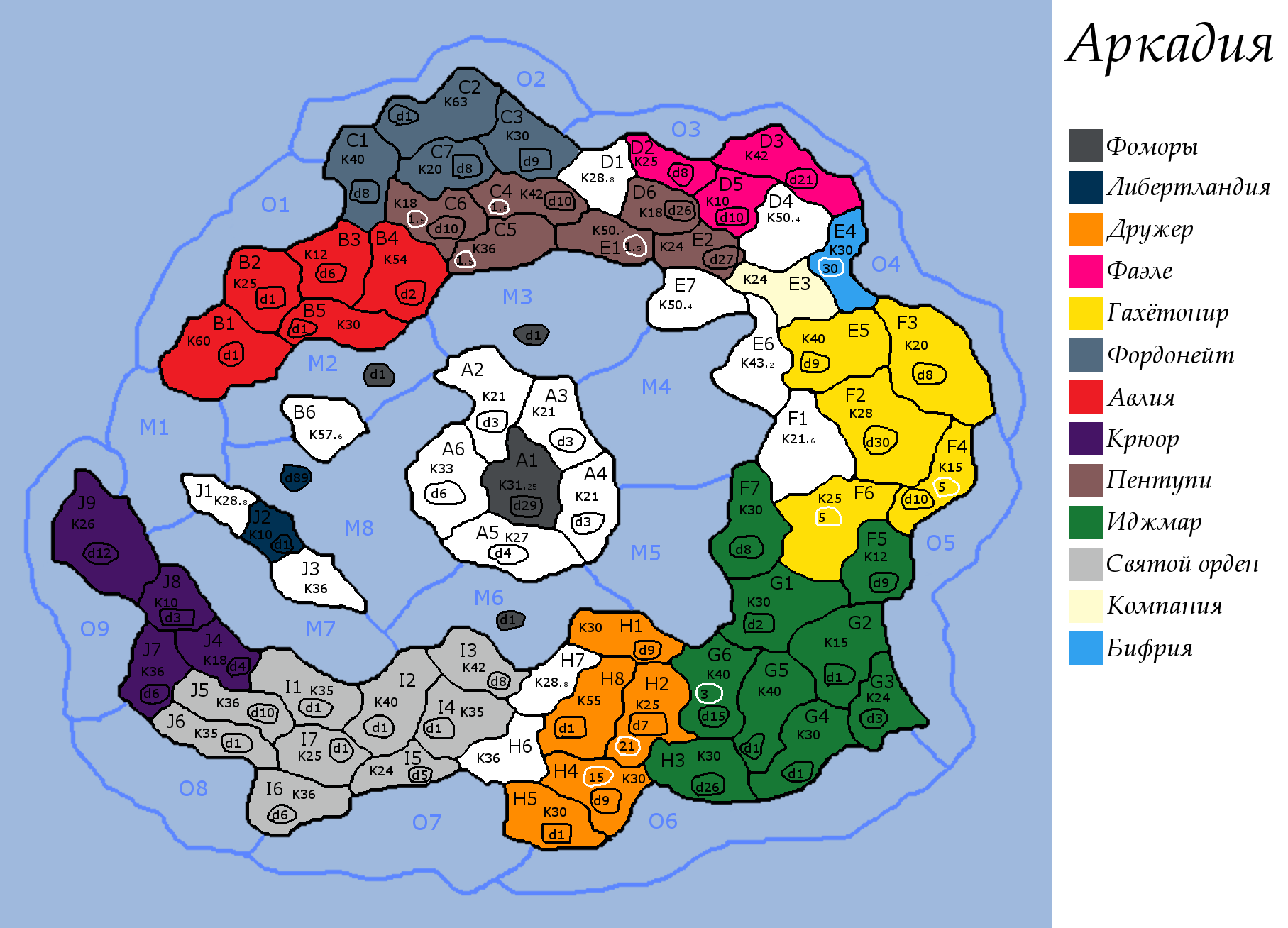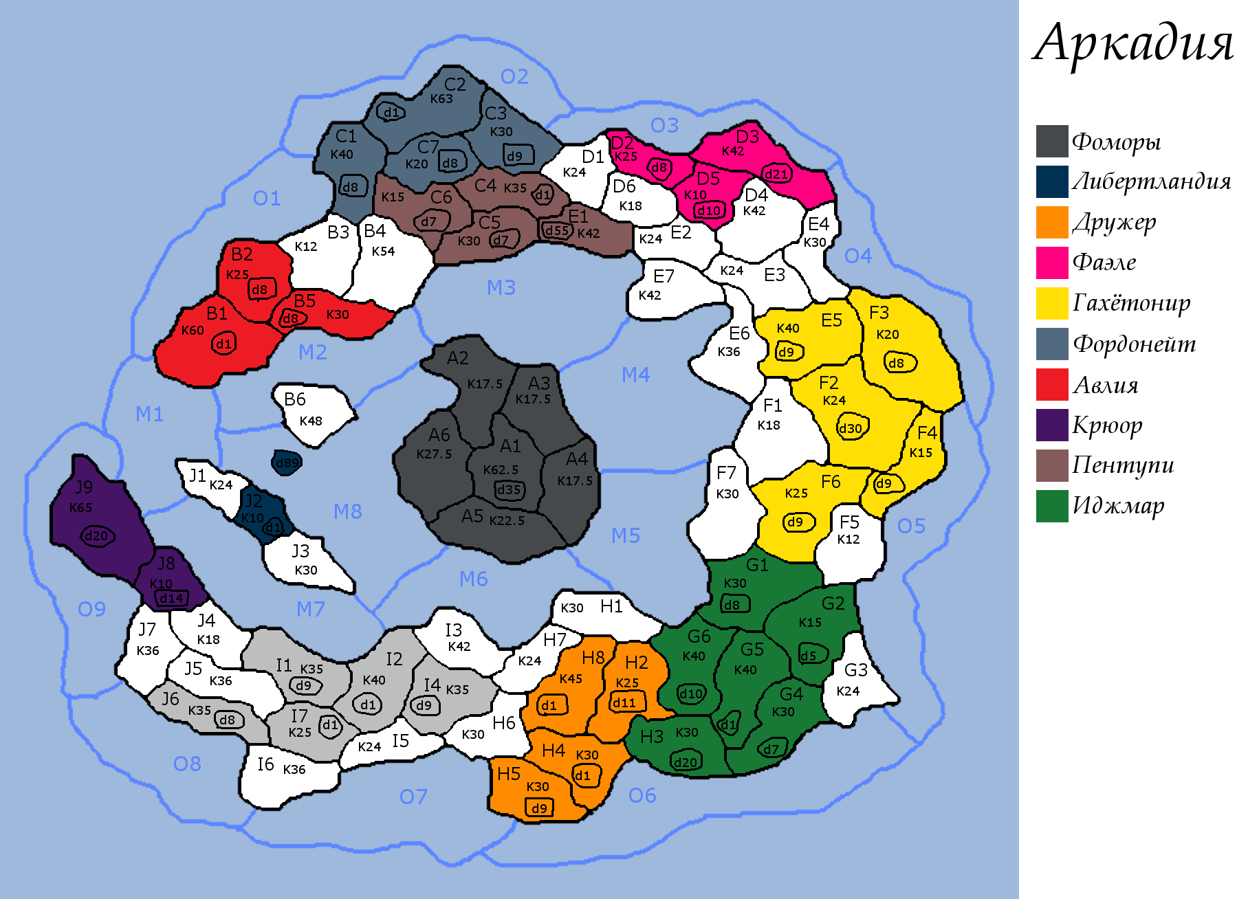 На генерацию 100 очков. Покупка провинции равна капиталу провинции. (Нельзя купить провинции фоморов на Централе.) Остаток можно потратить на армии или сохранить наличкой. Не забудьте про название, цвет, описание возникновения и лидера. И вообще, ролиплей всячески приветствуется. З.Ы.: Сеттинг – постапокалиптическое средневековье с магией, остальное за вами.