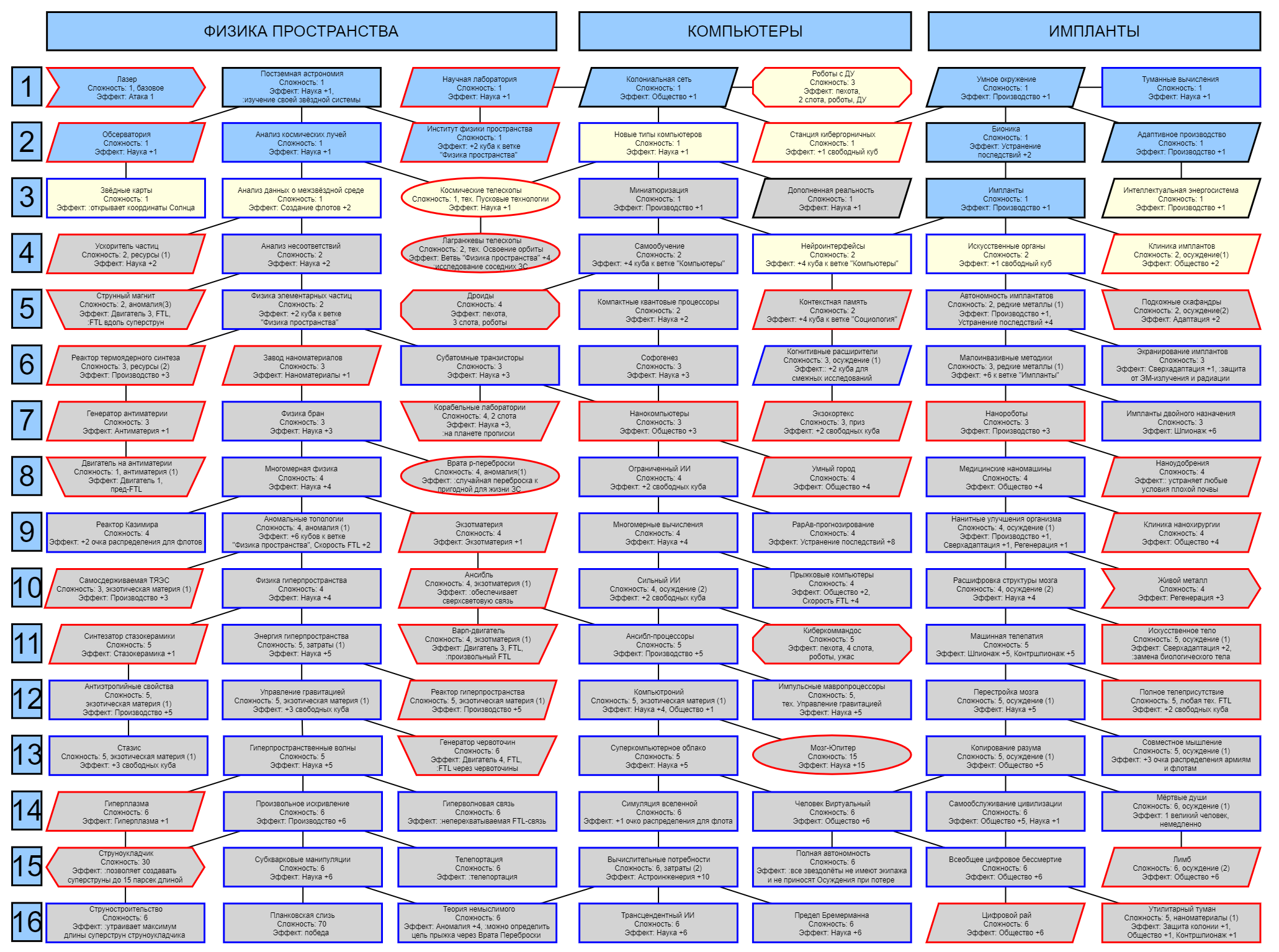 Непонятным только осталось где вам нехватает кубов науки. >>712868 >Я был бы не прочь увидеть... Кубов так 10 науки ещё. И это минимум Суммарная стоимость того, что можно изучить исключительно наукой, у вас где-то 11, при беглом взгляде. Неужели вам настолько стыдно признаться, что ваше общество развито хуже, чем у лагерного быдла? >>712899 Речь о том, чтобы сразу по две-три техи осваивать последовательных. То есть не за три хода, а разом, сразу гроздь.