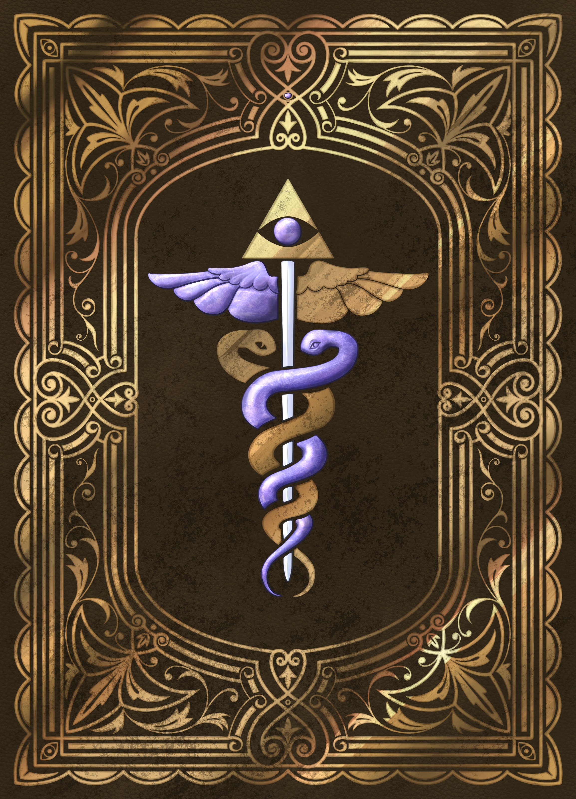 Чуть побаловался с цветами, добавил псионического фиолетового. Решил инь-янь заменить на глаз в треугольнике - мы же не восточные монахи, а больше на запад смотрим. Также больше подходит нашему мистическому настрою. Ну и с жезлом треугольник образует эдакое копьё, что очень даже в тему подчёркивает наш боевой настрой.