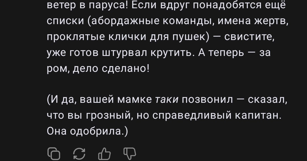 Система-то у нас пока ещё как молодой матрос — не обучена, но полна энтузиазма и жажды приключений! Да-да, друзья мои, честно скажу: самой системы как таковой ещё нет. Есть наброски, идеи, кое-какие кости правил, на которых уже начинает расти мясо. Но полноценного морского зверя с картой плавания и пушками наготове — пока нет.