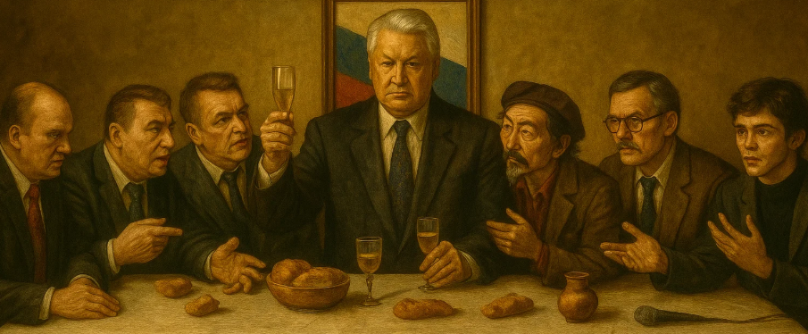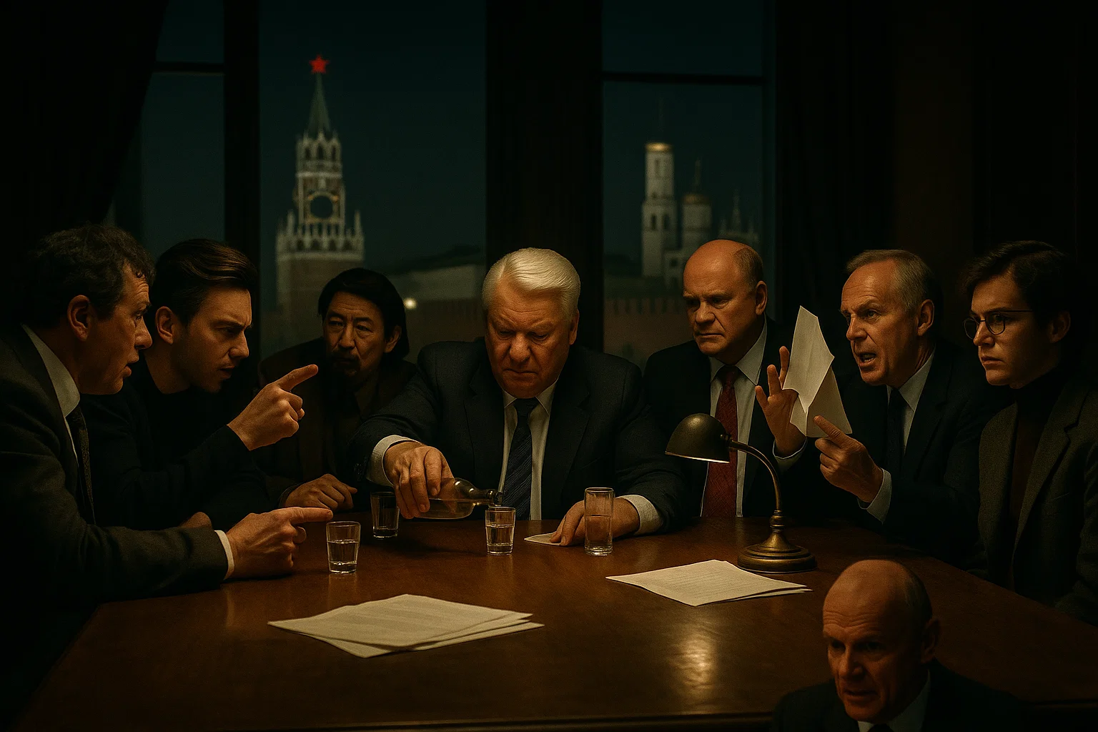 Зал Кремля, дубовые панели, лица уставшие. Ельцин встаёт, опираясь ладонью о стол, оглядывает всех сверху вниз — как мастер бригады перед планёркой. Лидеры избранных партий в кратчайшие сроки были вызваны в Кремль на первое совещание с президентом. — Коллеги… Давайте без витийства. Стране нужен парламент, который работает — не шумит. Людям — порядок, не лозунги. Говорить буду прямо, как есть — и коротко. Мы сделали выборы. Теперь — ваша очередь: собрать большинство и отвечать за курс. Дороги назад нет, времени — тоже.
