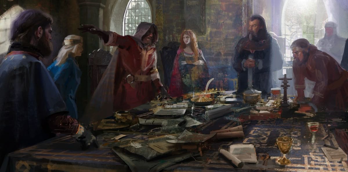 Что можно сказать про приглашённые семейства? Отношения между нами можно охарактеризовать как заклятую дружбу. Кто-то наверняка затаил обиду из-за того, что династический брак был заключён не с их домом, кто-то не доплачивает налоги, кто-то в частной беседе обзывает монарха ослом и раздувает сепаратизм. Самые обычные вассально-сеньорские дрязги. Тем не менее, явных причин идти на такое чудовищное преступление для них не прослеживается. А даже если так — неясно, каков их план в отношении принца.