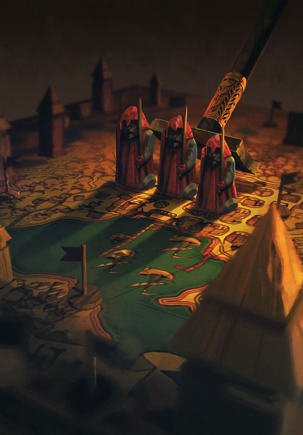 Хотя улик повсюду было разбросано предостаточно, все они лишь подтверждали старые догадки, но ни одна не обещала новых озарений. Задумчивый демон в лёгком замешательстве бродил посреди застывшего во времени безумного карнавала, не зная, за что хвататься. Его внимание привлекли карты старших аркан, прибитые к спинкам кресел в королевском шатре.