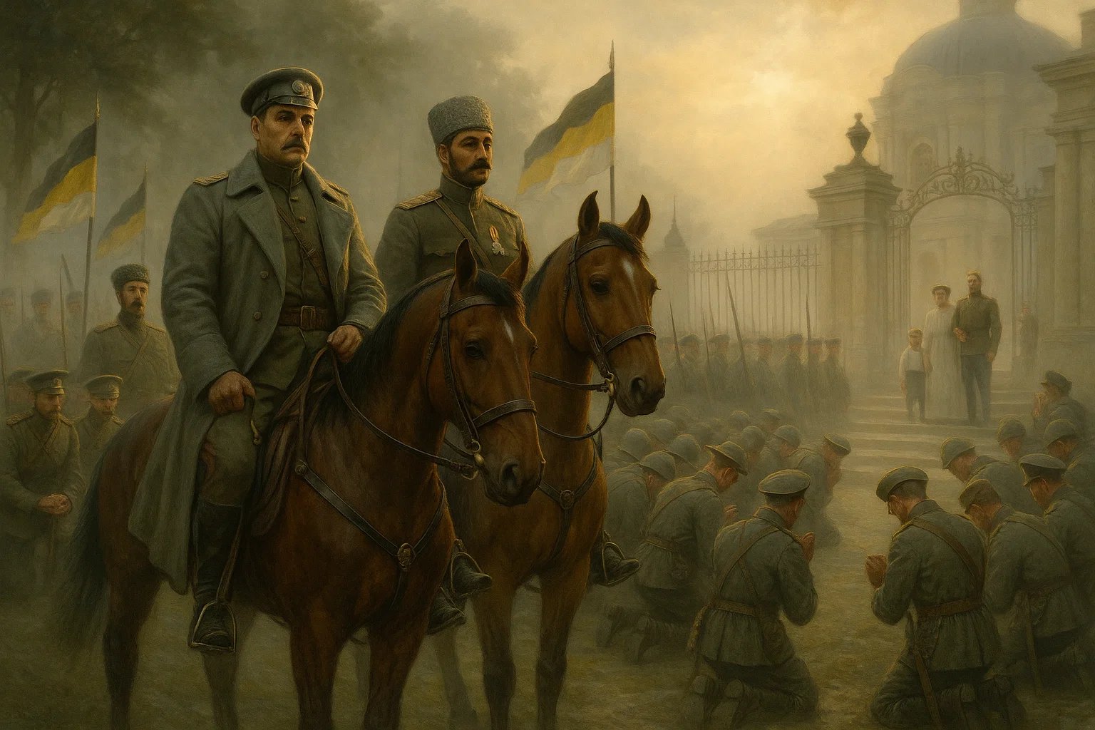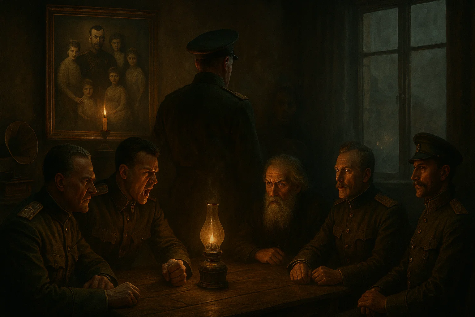 Свеча у портрета дрожала, отражаясь в глазах детей Романовых на фотографии. Голос Вертинского плыл дальше, тянул скорбную мелодию, а за окном ружейные залпы сливались с криками толпы. Здесь, в этой тесной каморке, рождался заговор, которому предстояло бросить вызов не только Временному правительству, но и самой России, скатившейся в хаос.