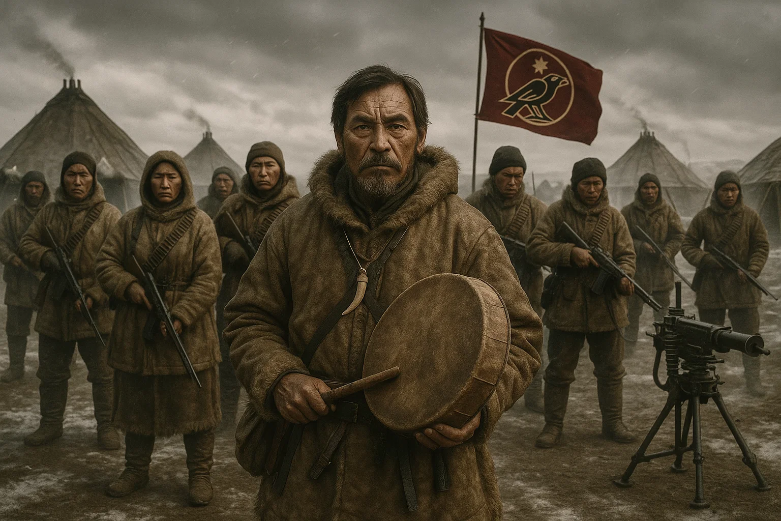 1. Сильные стороны и уникальные возможности: Абсолютная уникальность и непредсказуемость: Ни Временное правительство, ни Петросовет, ни даже мартыновцы не будут иметь никакого концептуального понимания, как бороться с революционным шаманизмом. Их материалистический язык бессилен против риторики ЧОА. Идеальная база для партизанской войны: Бескрайние, суровые и практически непроходимые для регулярной армии пространства тундры. Чукчи — прирожденные выживальщики и воины. Попытка кого-либо «усмирить» их силой обернется бесконечной, кровопролитной и бесполезной кампанией. Мощный лидерский миф: Биография Алелекэ Тынэвири — это готовый эпический сюжет. «Шаман, прошедший путь от Анадыря до Нью-Йорка, ученик Блаватской и собеседник Ленина» — харизматичный образ, способный объединить племена. Реальные ресурсы: Наличные деньги и современное американское оружие — это колоссальное преимущество в регионе, где царит натуральный обмен и где винтовка может стоить больше стада оленей.
