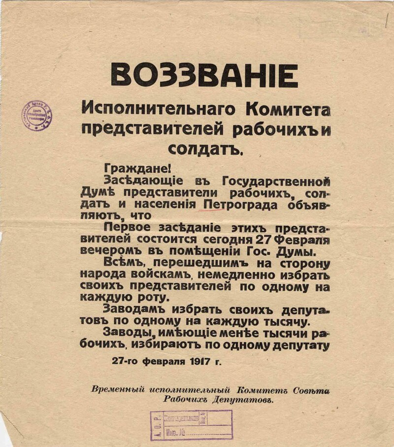 Но революция только началась. Временное Правительство в Петрограде было не единственной властью молодой республики. Там же заседал Петроградский Совет солдатских и рабочих депутатов, второе правительство страны, с радикально иными взглядами на будущее России, её устройство и обязательства перед союзниками из Антанты.