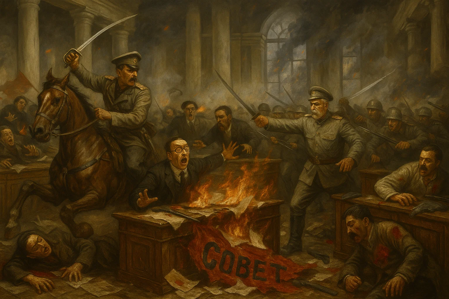 2. Слабые стороны, уязвимости и исторические риски: Ограниченная массовая поддержка: Это главная и роковая слабость всех монархистов в 1917 году. Солдатская масса устала от войны, крестьянство жаждало земли. Лозунг «вернуть Царя» для них означал вернуть старую жизнь. Союз рискует остаться элитарным заговором, неспособным поднять за собой широкие народные массы. Их сила — в качественном перевороте, слабость — в удержании власти после него. Тактическая сложность цели: Возвращение именно Николая II — крайне проблематичная цель. Его авторитет был сильно подорван даже среди монархистов. Более реалистичной целью был бы другой кандидат (например, цесаревич Алексей при регенте Михаиле). Упорство на Николае может расколоть даже сторонников. Враг №1: Их главный враг — не Временное правительство (которое они презирают как «слабое»), а большевики. И большевики к осени 1917 года будут иметь на порядок большую поддержку в тех же солдатских и рабочих массах. «Союз» обречен на лобовое столкновение с ними. Риск провокации: Кампания террора против левых может спровоцировать жесточайшие ответные репрессии и окончательно оттолкнуть от них колеблющихся.