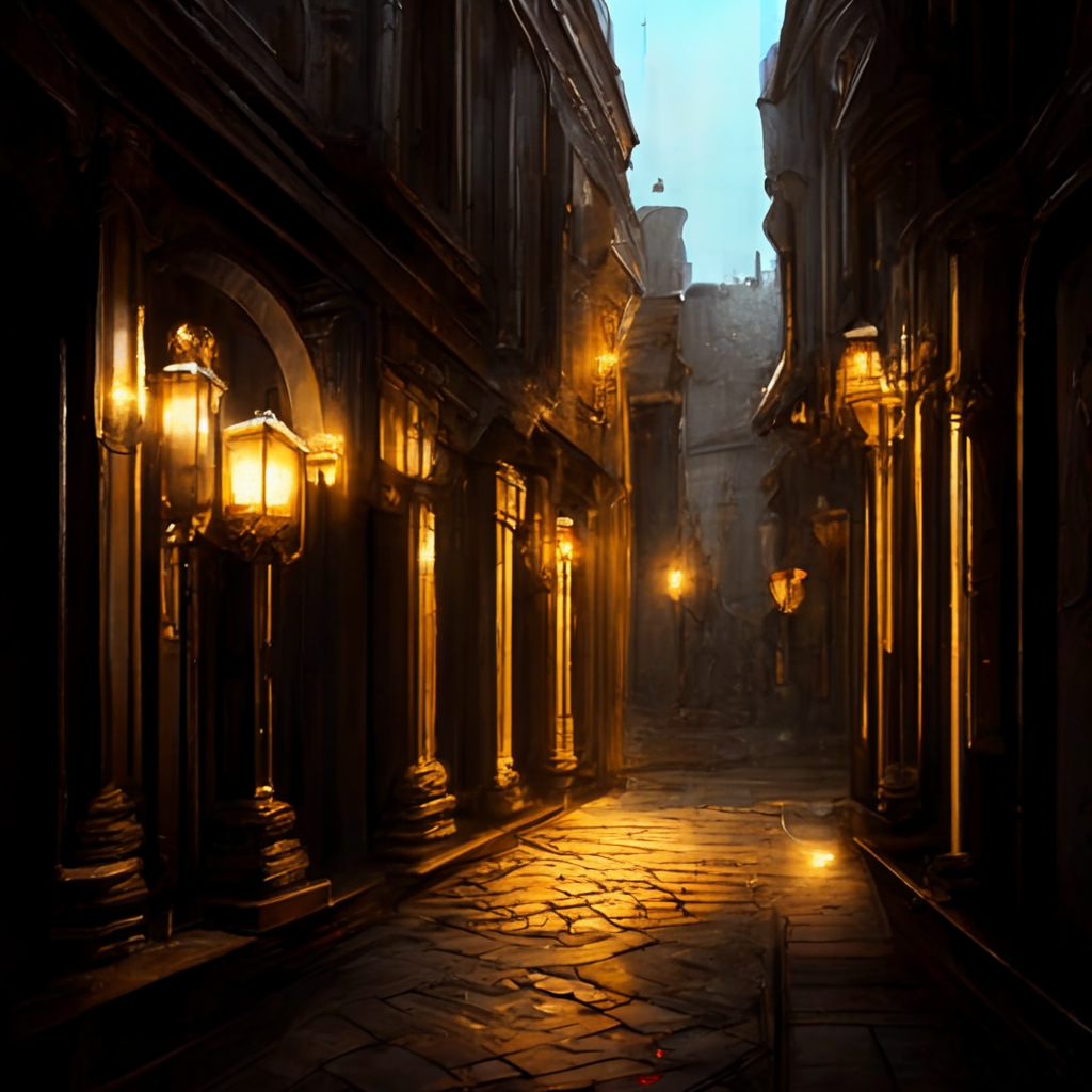 >>865173 В спину ему звучали лишь приглушённые команды, редкие вскрики боли и глухие удары виноградной лозы вдоль хребтов всевозможных тварей, как бы сильно они не пытались сбежать. Особенно не выбирая направления, мужчина смог скрыться в одном из переулков. Его торопливые шаги сопровождали безразличные взгляды из тёмных окон, а так же лёгкий шум горящих ламп, питаемых неизвестной энергией. Холодало. Ночь, хоть и ощутимо осенняя, не позволяла расслабиться и выдохнуть напряжение от внезапной стычки.