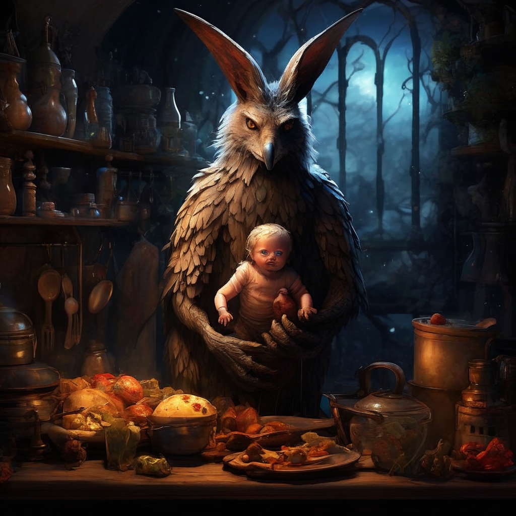 В комнату зашла птице-жена, неся котелок с всё ещё побулькивающим мясным рагу. Умелым движением, она водрузила посудину меж говорившими, не проронив ни слова. Лишь её птичьи глаза выдавали недовольство и злость.