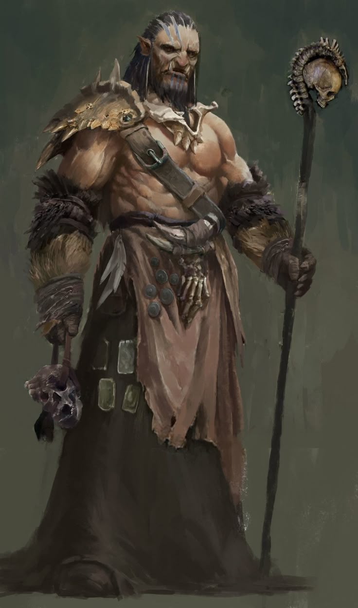Береговые орки вообще особые: пониже ростом, зато руки длинные - чтобы сеть далеко закинуть и воду как веслом загребать. Кожа тёмная, выжженная солнцем и вытравленная солёной водой, волосы вечно слипшиеся, глаза прищуренные — чтоб не слепило от бликов. От них пахнет морем, потом и слегка тухлой рыбой. Орки, правда, не чувствуют - привыкшие.
