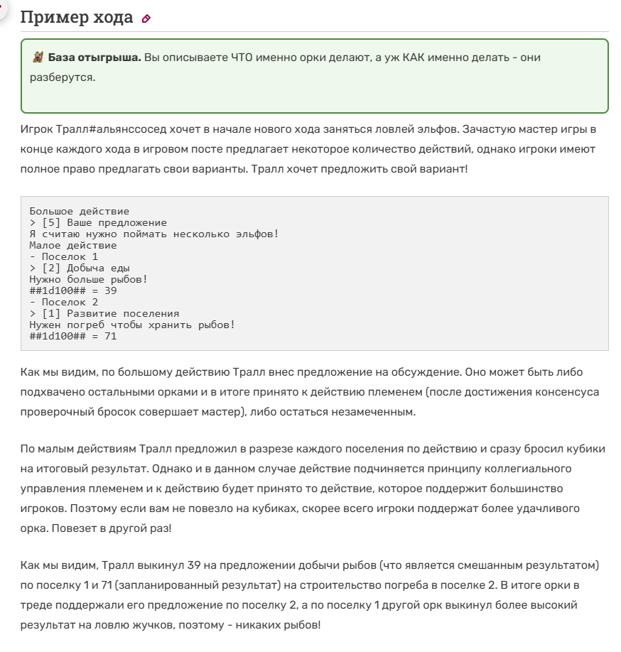 К слову, не обязательно заявлять КАК ИМЕННО орки что-то сделают - уж разберутся. Ваша задача - именно задать вектор, ЧТО ИМЕННО поселение будет делать.