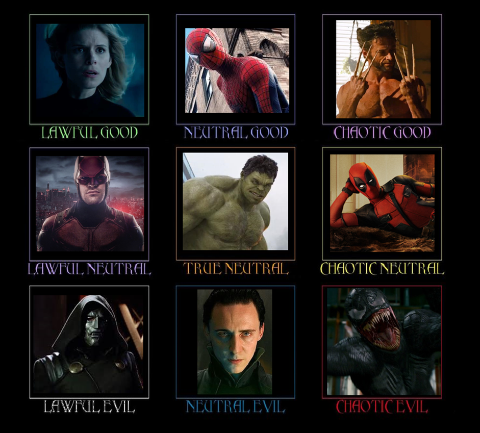 5. После того как вы определите имущество, вы можете выбрать мировоззрение персонажа. Это будет классическая схема мировоззрений из ДнД (см. изображение). Следование своему мировоззрению во время миссии будет способствовать восполнению ресурсов ОУ и героизма.