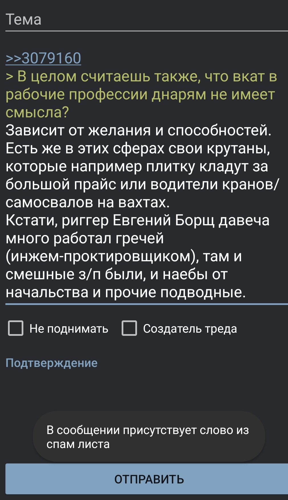 >>3152713 думаю на другой доске надо делать, а кто в архив добавил второй тред? ты чтоле? Да и вообще здесь особа смысла нет, в идеале другой сайт, а то смысл с быдлом? я в ночные клубы не хожу и здесь сидеть не намерен