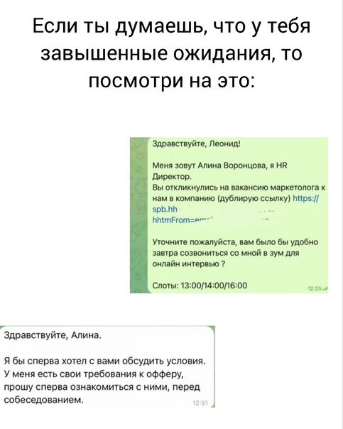 >>3113082 А хули она мне самому написала в вотсап, если там очередь за забором? У меня самое конченое резюме которое представить можно, единственные плюсы это только что я живу в 20 минутах и могу два слова связать.