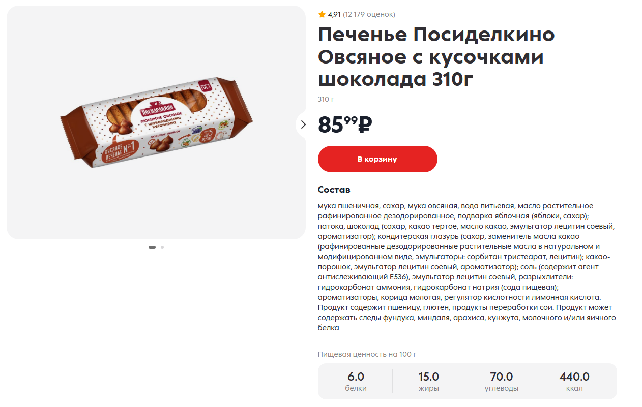 >>3128652 Если вдруг пидорасы из пятерочки сидят в треде и хотят оправдаться, то на скриншоте приведена похожая модель печенья для примера. Та на которую меня заскамили была чуть другой, но выглядит также и там 16 штучек в пачке весом 350 грамм, с разными вкусами они. Скриншот приведен для примера, чтобы люди в треде понимали, вот это печенье посиделкино весом 310 грамм стоит 80 рублей, оно пиздатое. А вон то засахренное дерьмо от сладкой слободы при таком же весе будет стоить 155 рублей, т.е. в 2 раза дороже. Вот и думайте головой.
