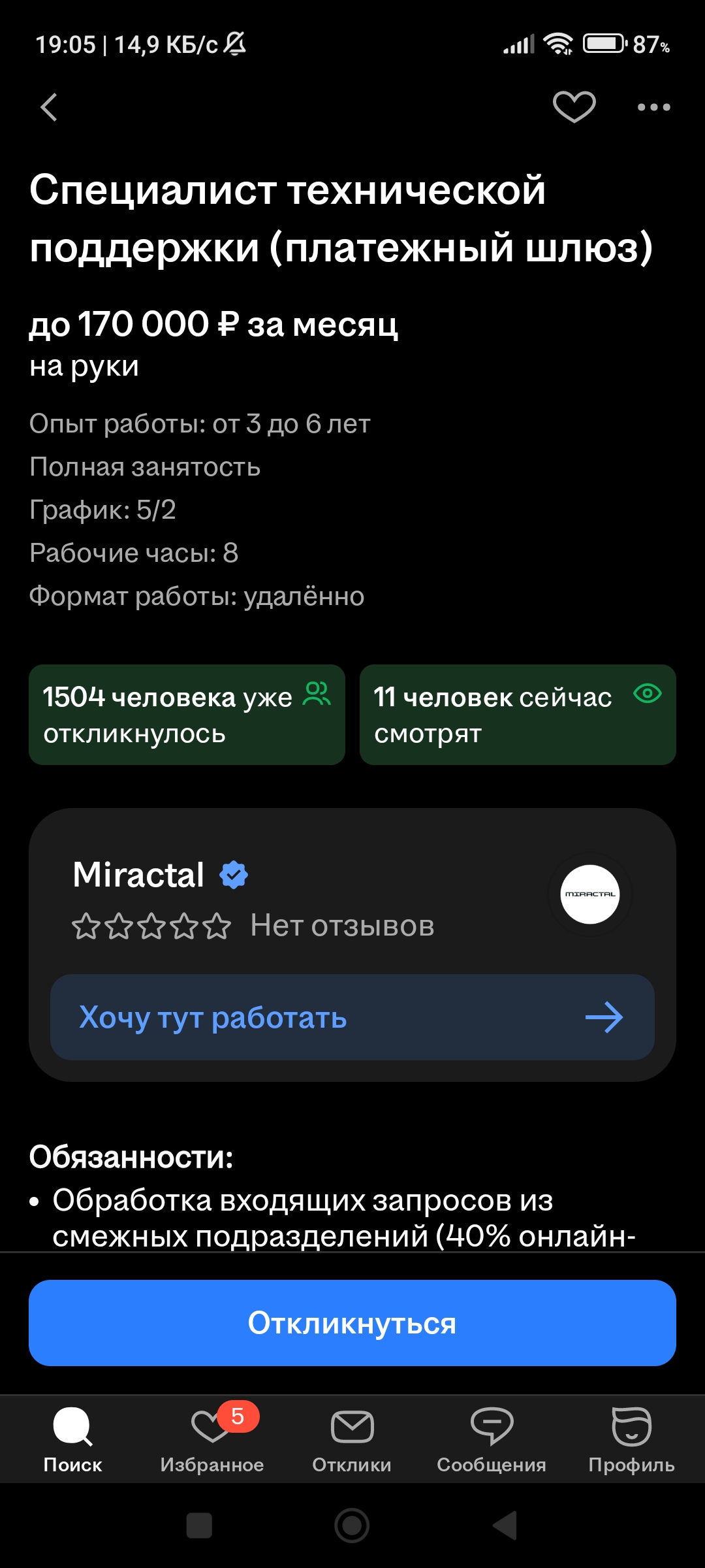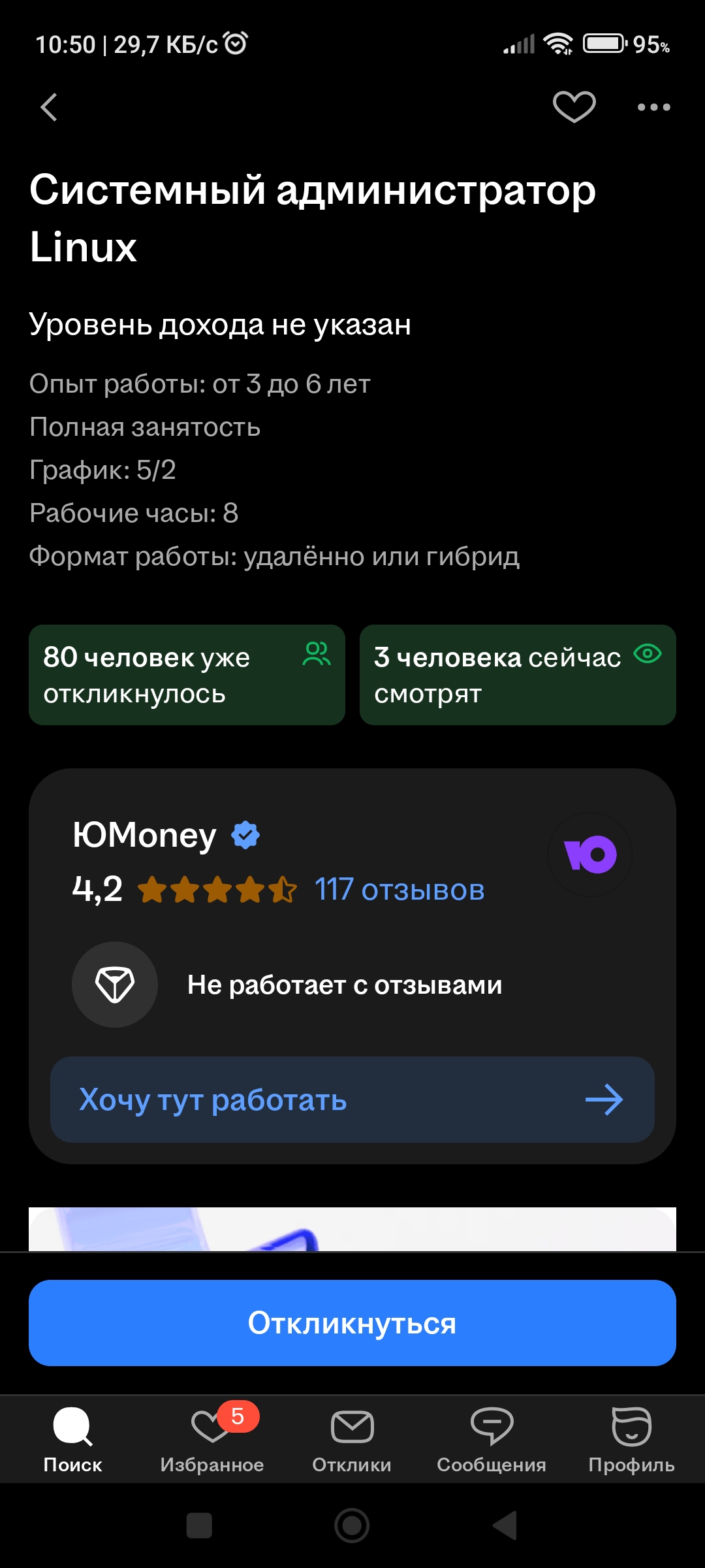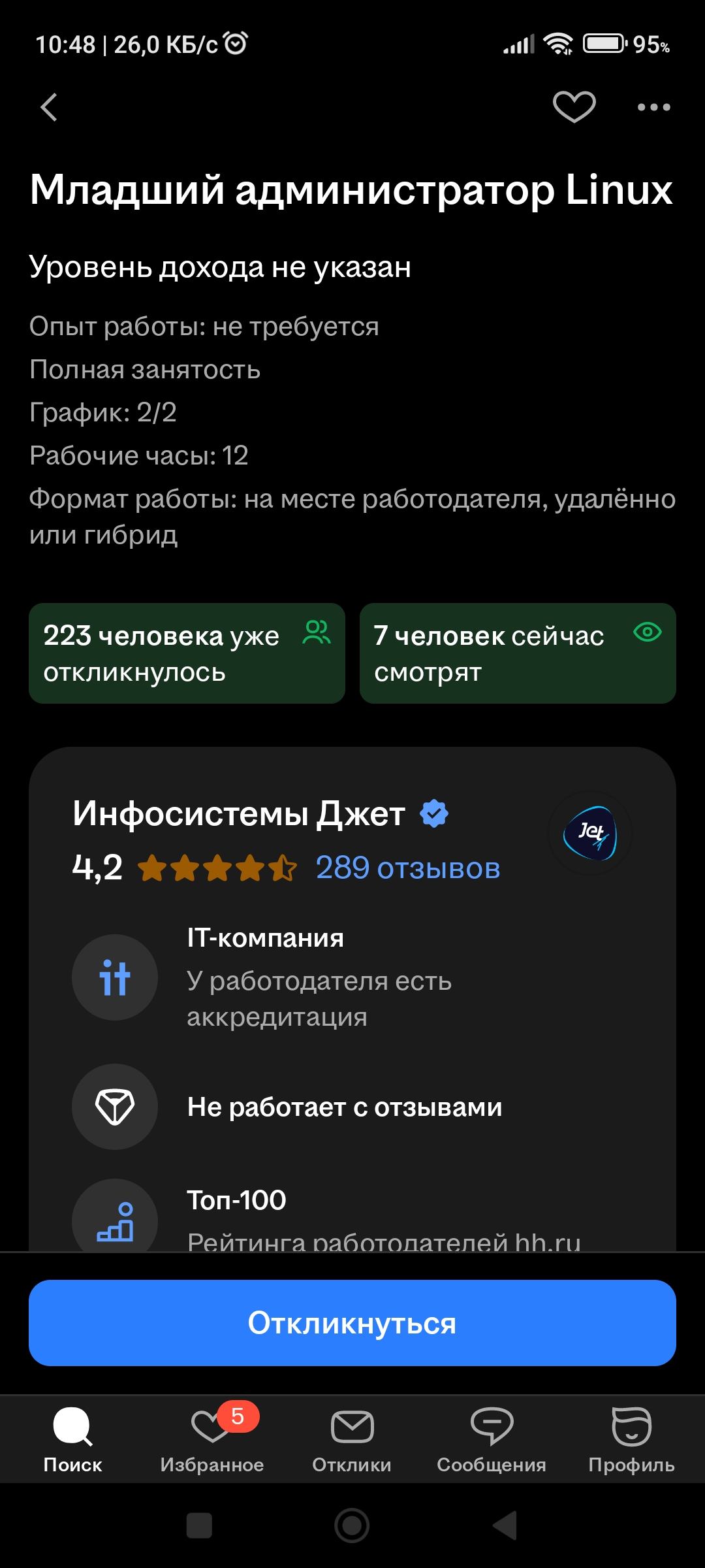 >>3135032 У меня так же было, но с Магнит Tech. Потом мне написали в ватсапп спустя 10 дней, когда я уж забыл про неё. Я не отказывался, но смотреть вакансию тоже не мог. Я потом проверил ещё, зашёл через инкогнито без авторизации и тоже не смог посмотреть вакансию. То есть она даже не в архиве была, а просто хуй знает что с ней сделали.