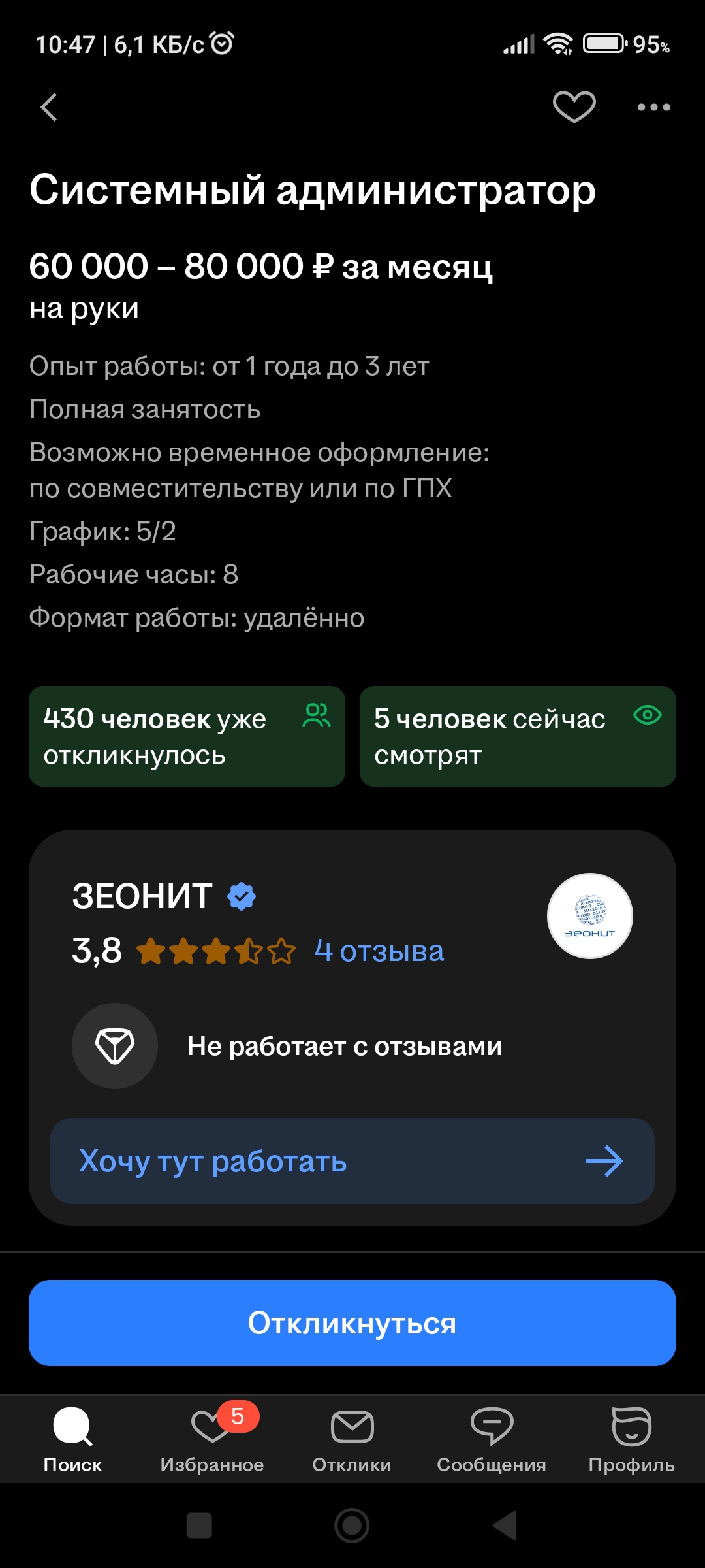 >>3134976 Я в Мегафон пробовал. Странные они какие-то... Получили отклик, заблокировали меня на их вакансию (или сняли её с размещения, не мог смотреть вакансию), я отказался, вакансия снова стала доступна для просмотра. И так 3-4 раза. Теперь снова повесили вакансию. я откликнулся, но сегодня суббота...