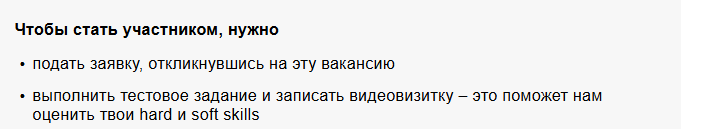 >>3139906 Ещё раз в требованиях обязателен опыт и навыки. Это на изи проверяется за пару часов. > Недобор Такое только там где зарплаты на уровне плевка в лицо. Типа в ЖЭУ за 25к в месяц.