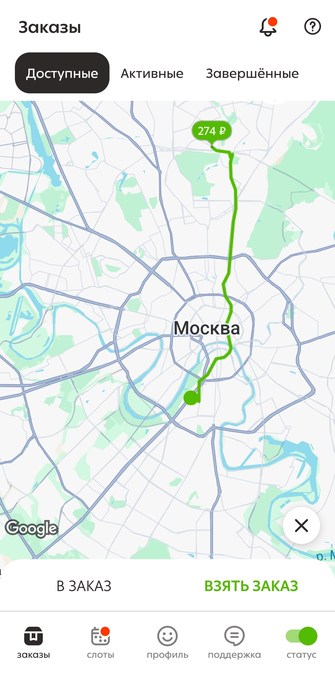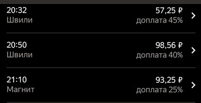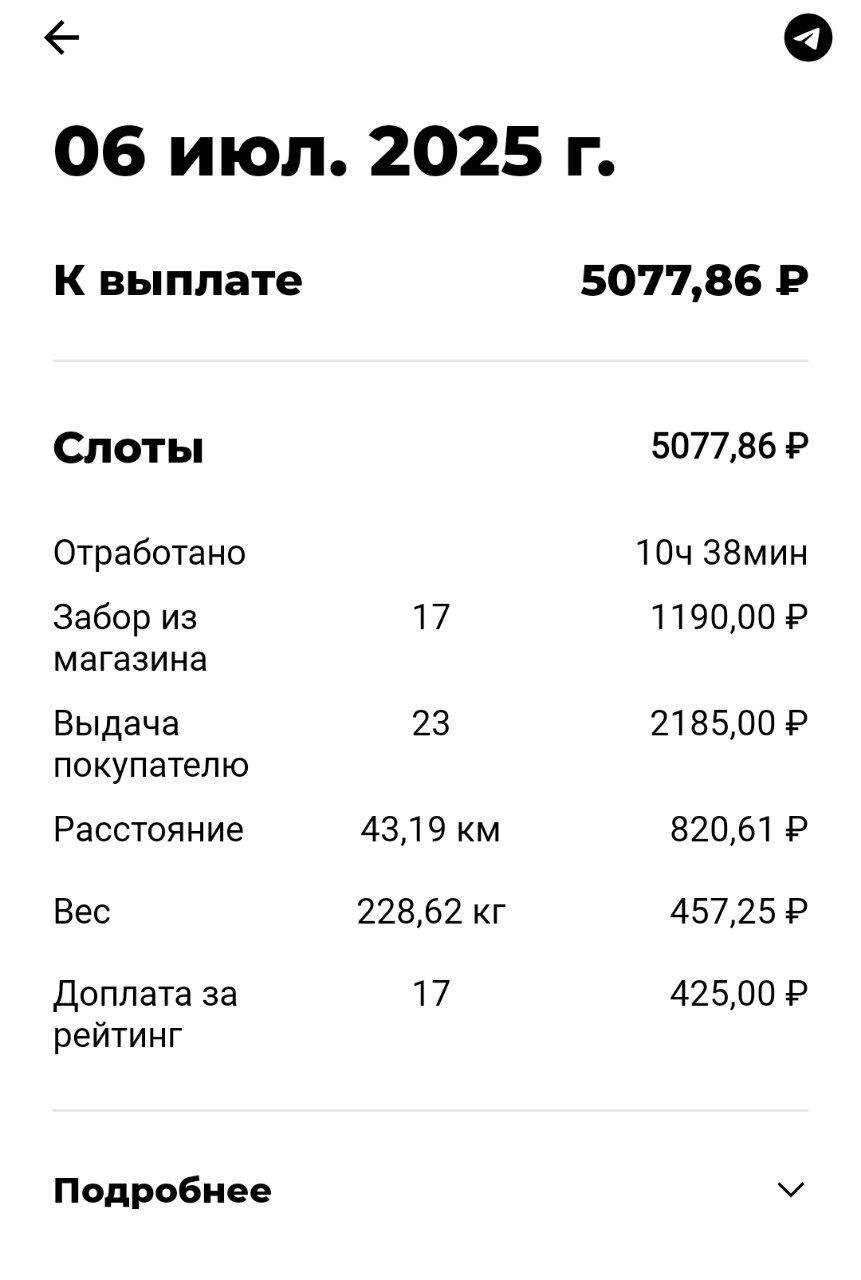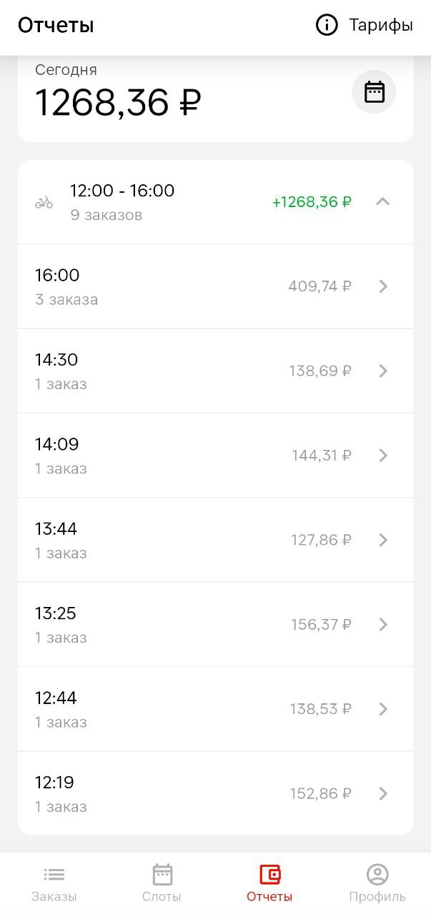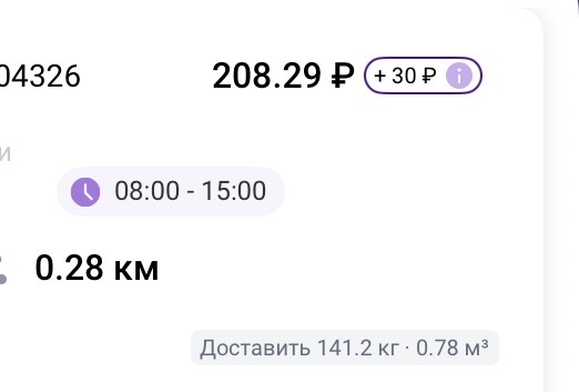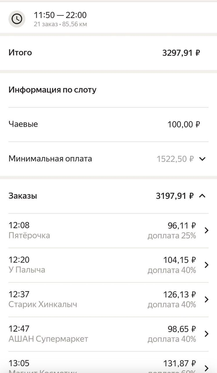 >>3137778 Всё те же 200р в час, +/-. После последнего заказа слота посидел помониторил заказ по пути домой, вообще это конечно тупо что нельзя до окончания слота это делать. Заодно чуть экспанулся в ручном наборе. В общем нашёл один, приехал на первую точку, а там выяснилось что заказ надо было забрать до 15:30, а в инфе заказа этого нет. Минут 40 минусанул за компенсацию в сотку, ну хоть не 0. Хотел уже в холостую ехать домой, как на остановке в 3 минутах появился заказ почти до дома, повезло.