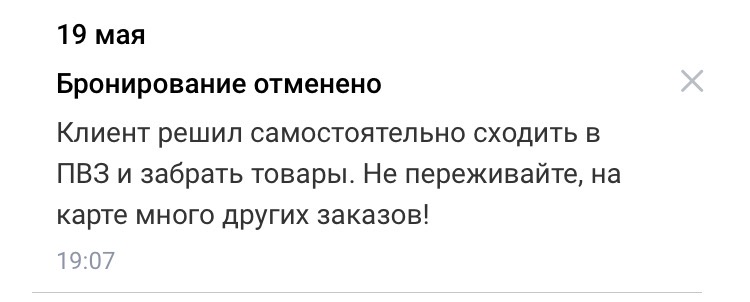 В одном пвз за час до закртытия было около 8 экспресс заказов, мне до него примерно 20-25 минут, но я решил хуй с ними, вдруг каких-то клиентов не будет, а пвз закроется и будет недосдача, я с утра до открытия пвз подъеду и что там осталось то и заберу.