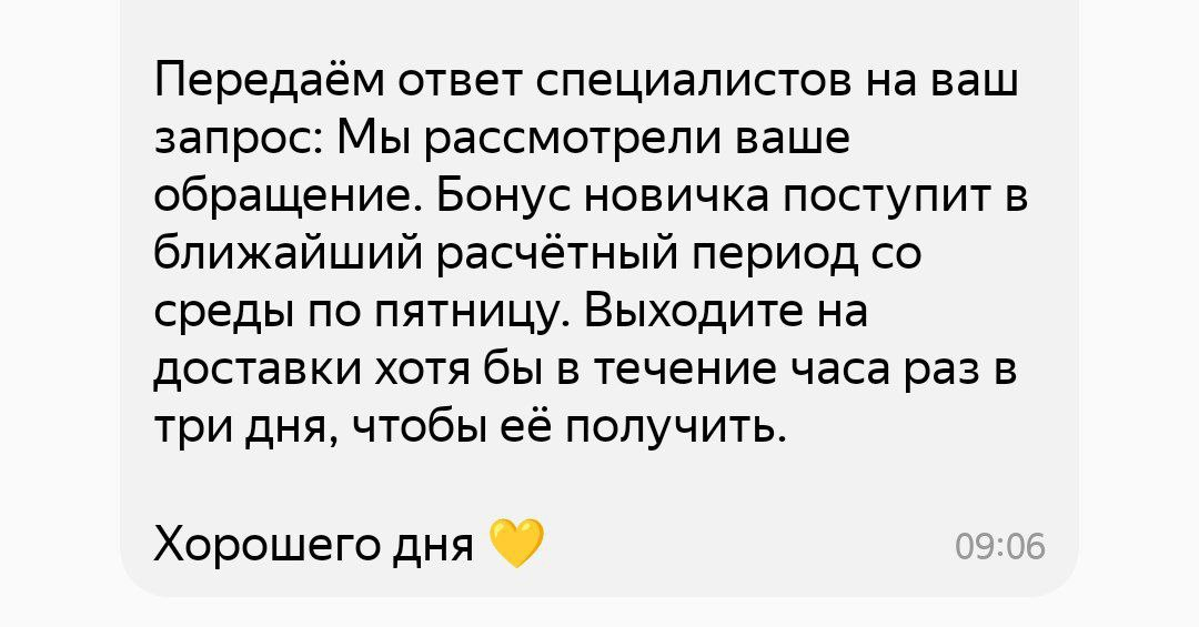Взял слот в достависте с 9 утра. Подтверждать нужно за 2 часа (как я понял, в течение 2 часов, т.е. хоть под конец, но чем раньше тем в теории лучше старт слота), сделал это ровно в 7 утра. Итак, слот пошёл , имею 1 заказ с 1 адресом с 13 часов. Не ну а чё, пол рабочего дня сидим дома, нормальный план. В общем в пизду этот кал, нужно сразу идти туда где можно нормально на потоке работать с минимумом простоя. Какой-нибудь развоз продуктов или еды. Достависту хотел ещё разок затестить на слоте в будний день, тест провалился с нулевой. Руками заказы брать впадлу, но может 1 день всё же попробую так.