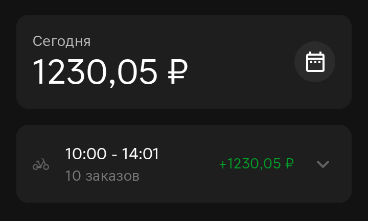 >>3138772 А, ну там же и про бонусы есть инфа если покопаться. В общем копейки за них будут накидывать, на 24 заказа может и все 5 дней рабочей недели уйти, т.е. в теории это +60-70р в час только на 1 неделю.