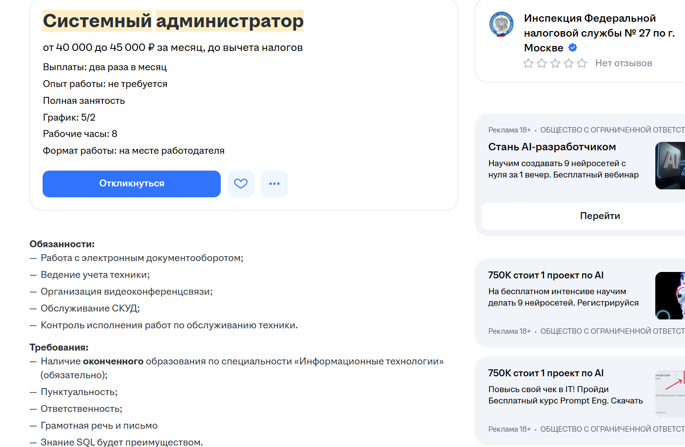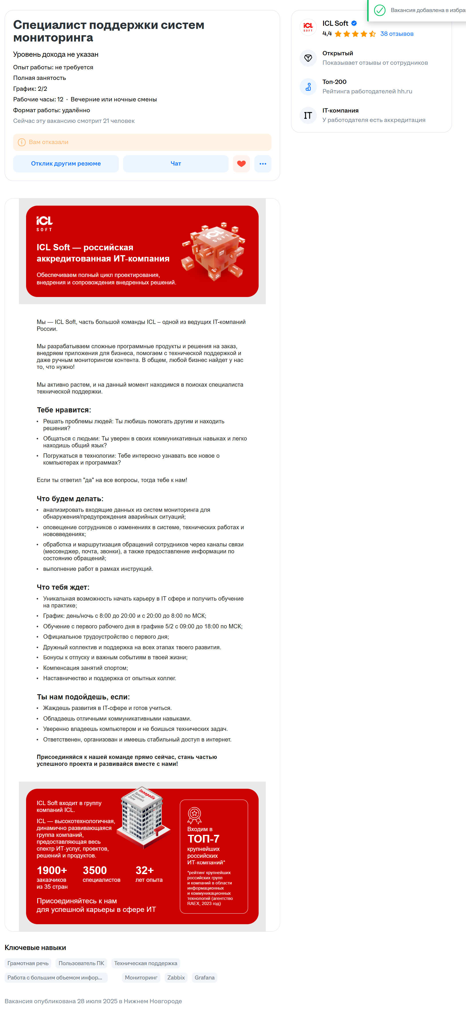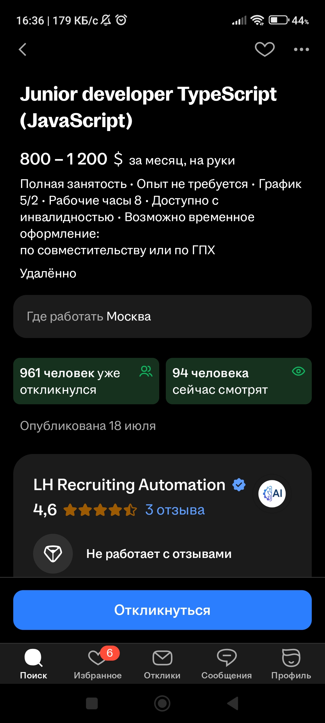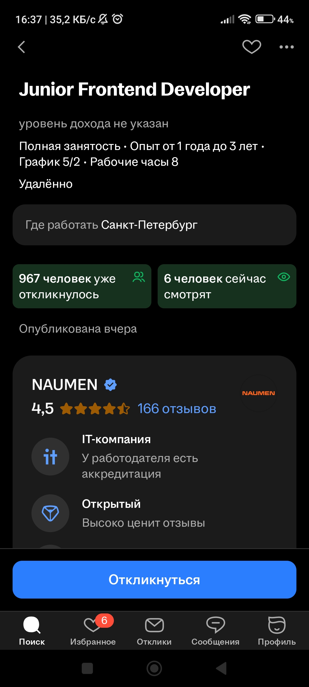 В мониторинге только. Ну и там разумеется конкуренция есть, в среднем 150-200 откликов. Если зп низкая (35-45к), то до 100 откликов, иногда даже поменьше. Если зп приемлемая (от 50к), то 150-200 откликов.