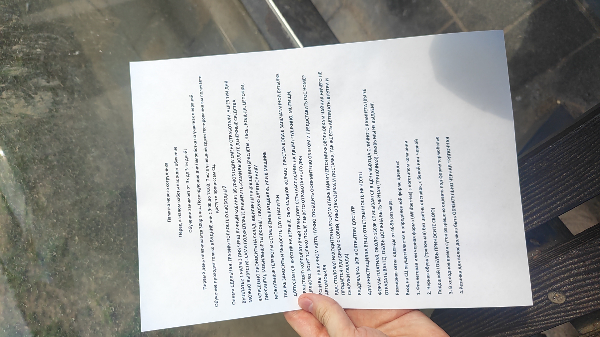 Ещё немного про ВБ. Говорю конкретно про Екб, потому что не знаю во всех ли городах такое, но от старших разных участков были ещё всякие предложения по работе. Это почасовая за 500р/ч, там как бы сошкой быть, делать что говорят: картон собрать и спустить с мезанина, склеить коробки для меза и наклеить адреса на мезанине. Штрафов нет. Графика нет, просто по потребности, подходить там к столу, узнавать нужны ли люди на часы. Потом куда-то на отгрузку, что там конкретно делать надо - не знаю. Но старший участка говорил что-то про 9к оплаты, штрафов тоже нет, но надо работать по графику 3/3 по 12ч. Можно выбрать работать в день или в ночь. И ещё на мезанин грузчиком. Надо на лифты и для штабилеров загонять гофры (примерно как сетки на озоне, ящик на колёсиках). Тоже штрафов нет, по 10к делают за 12ч, но из минуса сказали, что надо бегать между этажами. Получается мез 7 этажей и 1 человек контролирует спуск/подъем гофр с 1 по 4 этажи, другой с 5 по 7 и ещё захватывает 4 в помощь первому. График, сказали, по договорённости. Вроде как строгого нет, но и на час-два нельзя, часов 8 отработать, если встал на эту позицию.