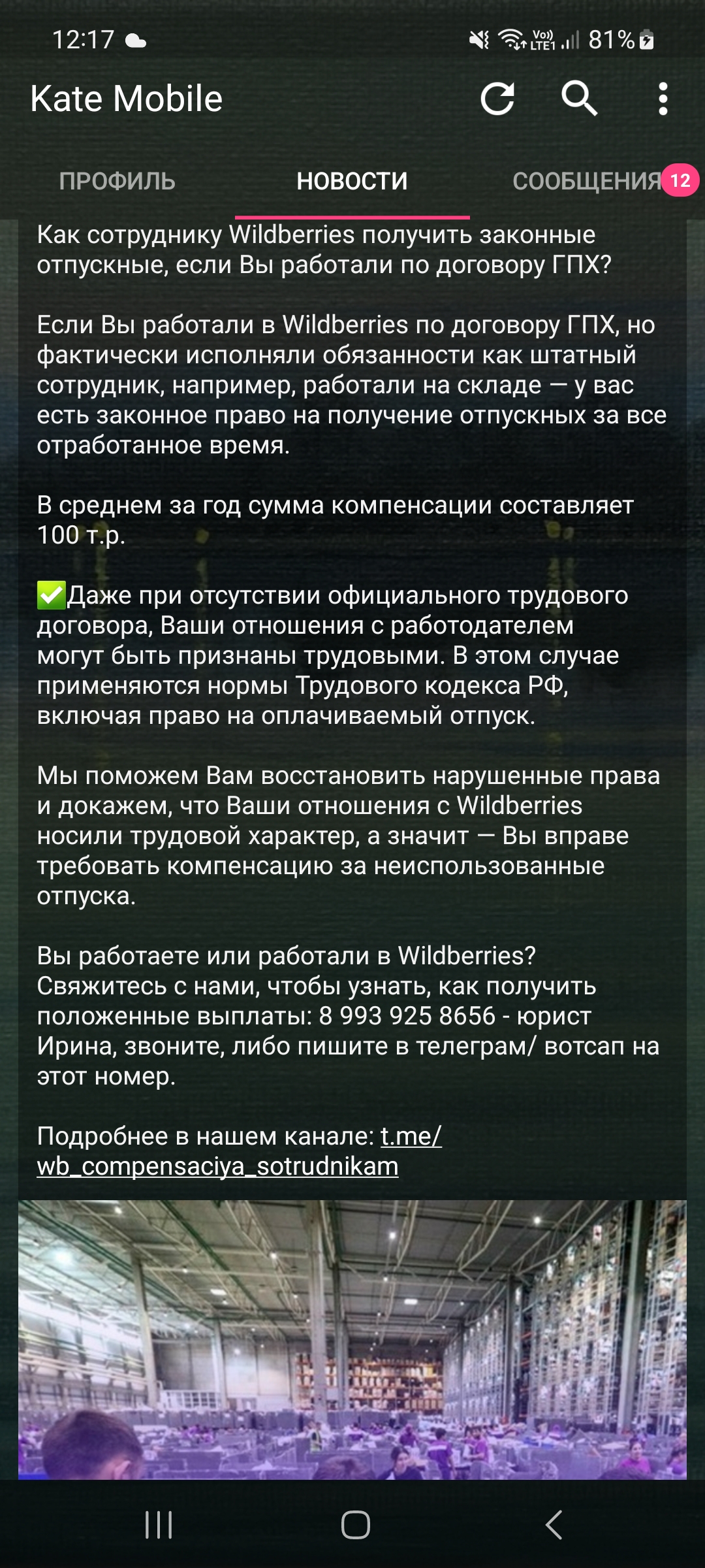 Q) Что по типу трудоустройства? А) Сейчас на ВБ остался только ГПХ. Те, кто давно работают, все ещё сохранили свои статусы самозанятых. Может ещё вернут возможность и новеньким идти по смз, но маловероятно. Вроде как власти собираются натягивать компании с смз и вб этого боится. На складах Алексин, Невинномысск, Казань и может где-то еще есть трудоустройство по ТК РФ. Общие условия в плане работы у них такие же как у ГПХ имею ввиду, что у них нет привилегий, как это происходит на озоне. Для начальства склада они такая же вошь, как все остальные. А так же у них все ещё полностью свободный график работы, но стоимость пиков может быть на 10% выше и само собой есть отпускные.