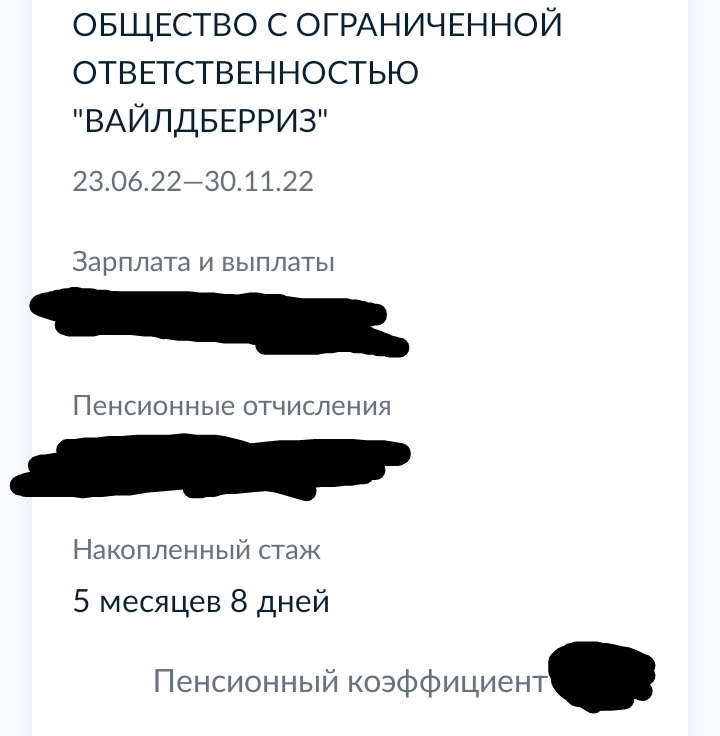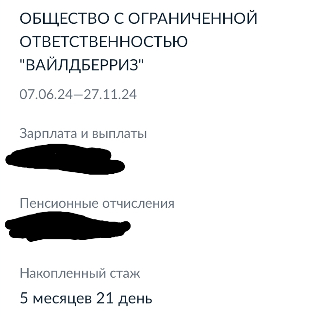Аноны, я тут с месяц назад спрашивал про трудовой стаж при работе по гпх на вб и озоне. Напомню, что работал там с осени и решил в декабре проверить делаются ли пенсионные отчисления и копятся ли баллы.Мне тогда ответили что нужно смотреть после нового года. Вот сегодня сделал повторный запрос на госуслугах. Данные о том, что я работал на вб и озоне появились, пенсионные отчисления есть.А вот в строке где написан накопленный стаж - прочерк. Ранее я работал по тк в других местах и в этой строке указывалось сколько времени я там отработал. И общий стаж рос по мере работы по тк. А за те месяцы что я работаю гпх к стажу ничего не прибавилось. Это что за хуета?