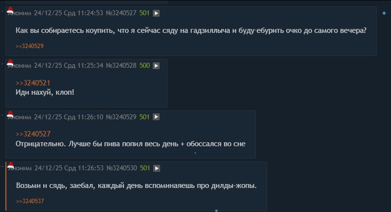 >хули вы эти дилды каждый день вспоминаете, свою ориентацию чекните сначала >сидит рассуждает в треде про дилды, пробки и тд, хотя про это никто не спрашивал, а разговор поднятый пару часов назад уже давно затих