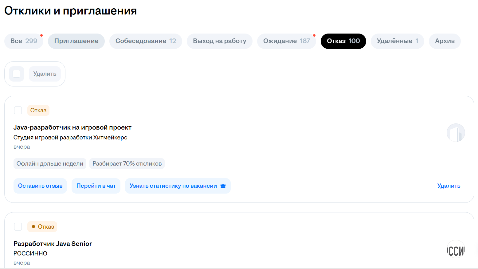 >Твоя задача - проходить собесы Не доходит до собесов вообще, одни отказы.